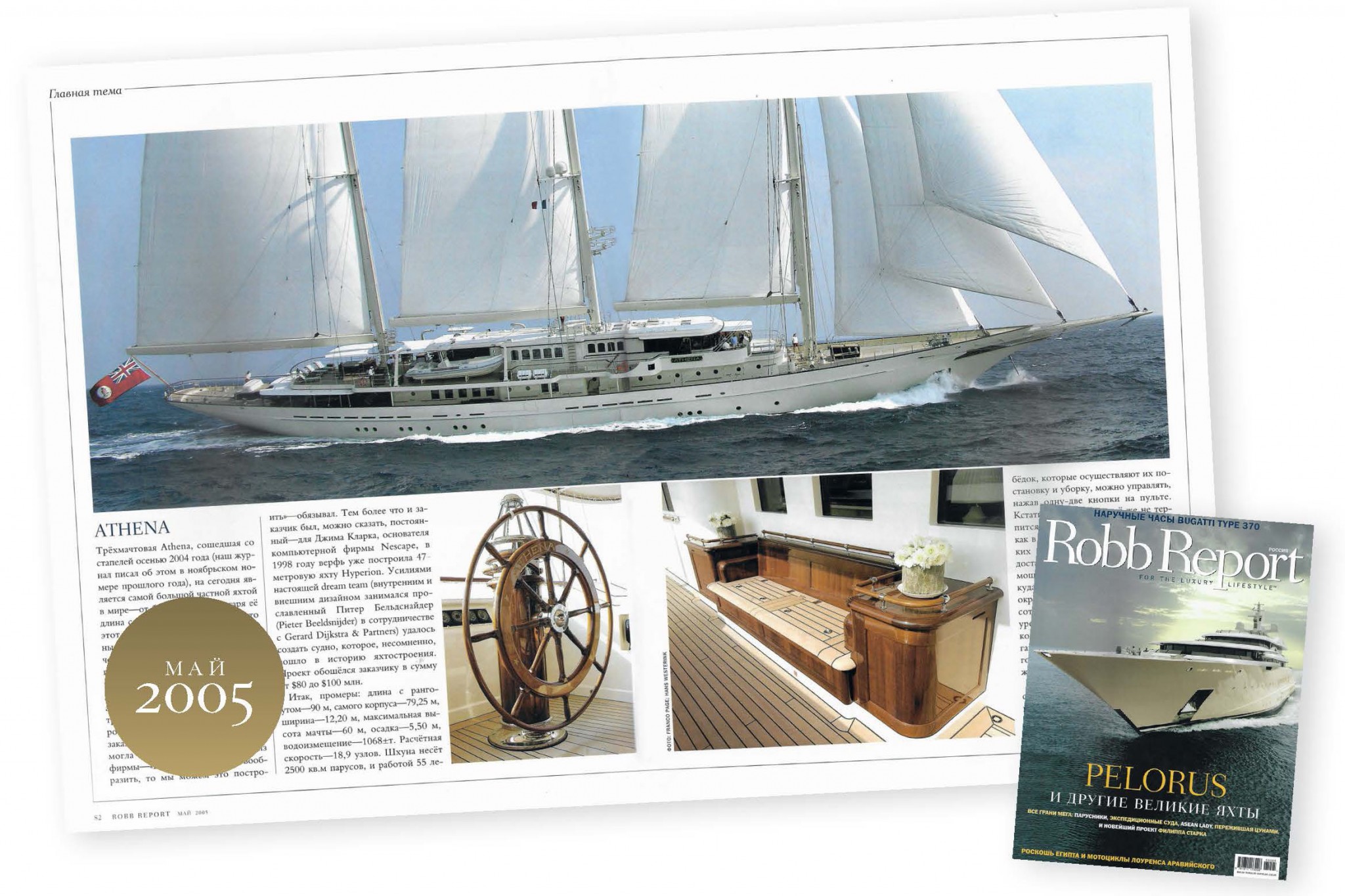90-метровая Athena верфи Royal Huisman, о которой Robb Report писал 14 лет назад, долго носила титул самой большой яхты в мире и, несмотря на внешнюю ретростилистику,