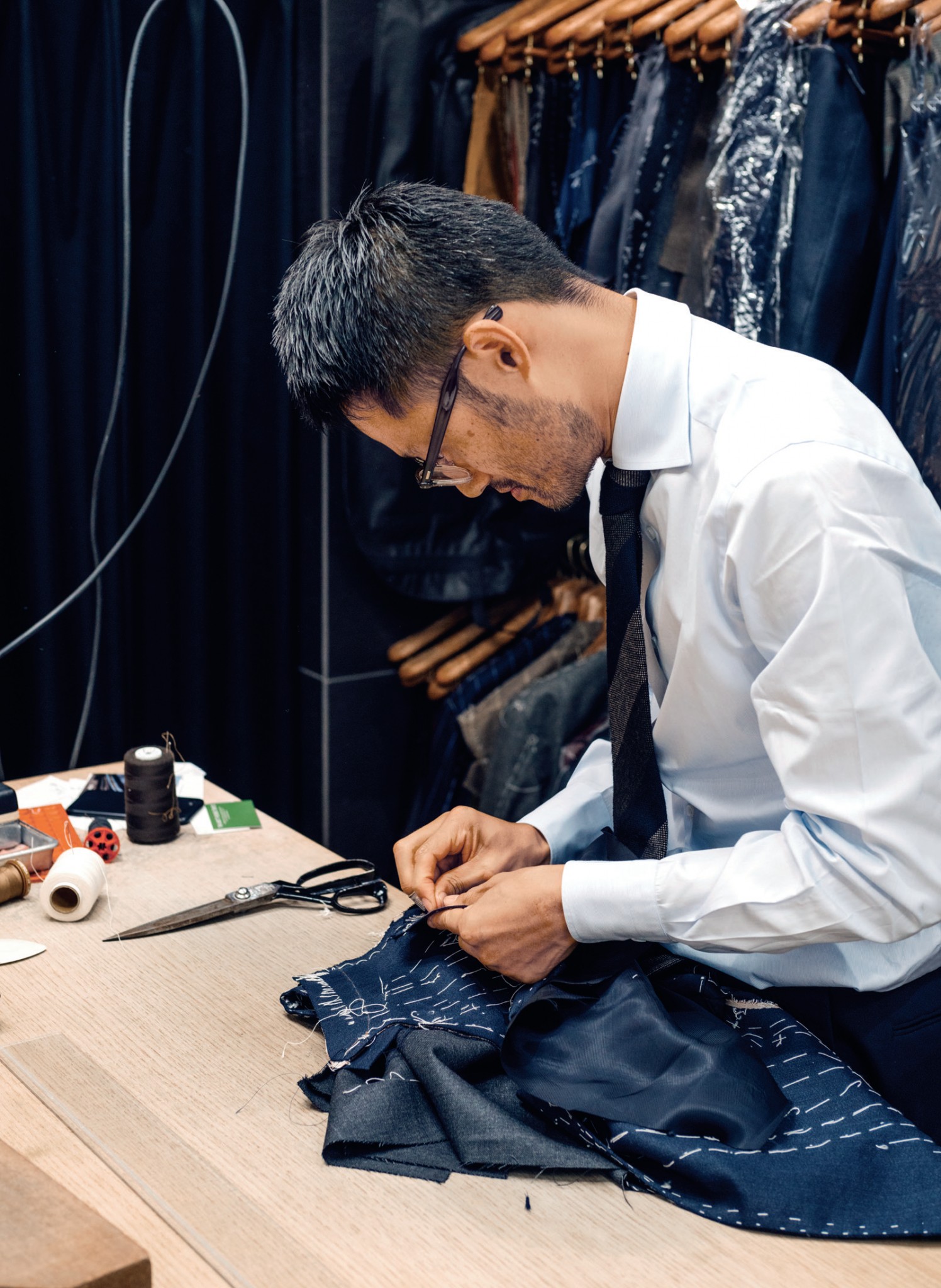 Нориюки Юэки, в прошлом сотрудник культового японского бренда мужской одежды Ring Jacket, повышал квалификацию в Неаполе, Мекке индпошива. Проработав около 4 лет в образцовом ателье Sartoria Dalcuore и у портного Антонио Паскарьелло, в 2015 году он вернулся в Токио и открыл магазин в квартале Минами-Аояма, где вручную кроил и тачал костюмы под доносящийся с улицы джаз. После неаполитанской стажировки костюмы получались с характерными высокими проймами, мягко скруглёнными плечами и широкими лацканами. «Мы не используем подплечников, так естественнее», — говорит Юэки. Чуть более структурированные, чем принято у неаполитанцев, его костюмы подходят и для бизнес-целей, и для вечерних выходов. Цены — от $5200.