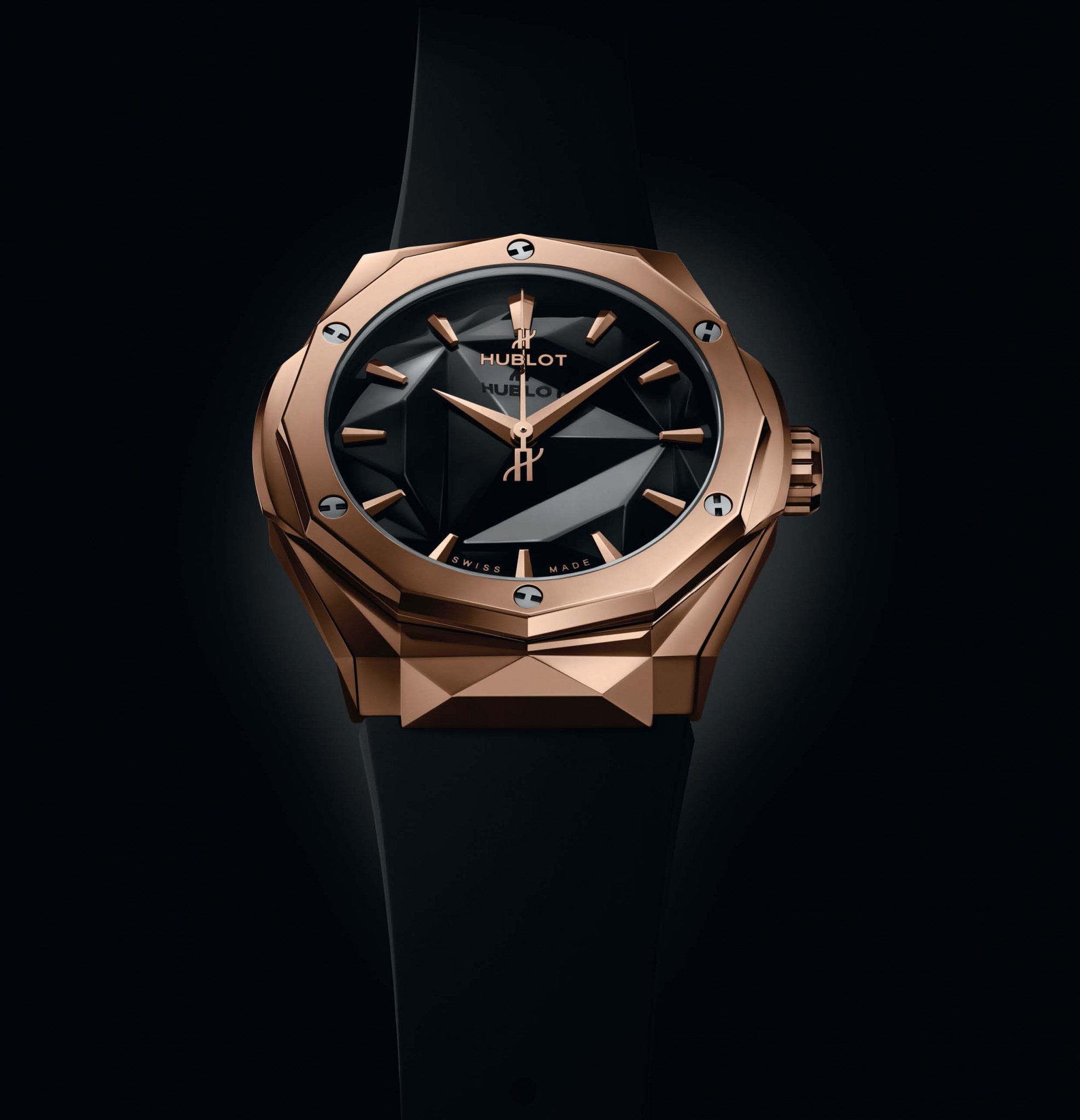 Критики определяют стиль модного и отлично продаваемого француза Ришара Орлински как поп-арт с налётом неофутуризма. Широко известны его громадные анималистические скульптуры из серии Born Wild: горилла на каннской набережной, крокодилы в Miami Design District, пятиметровый медведь, встречающий горнолыжников в Куршевеле. В 2017 году Ришар Орлински придал ободку циферблата часов Hublot форму любимого им додекагона (двенадцатиугольника). Так состоялась коллаборация между скульптором и часовой маркой. Вслед за тепло принятыми публикой массивными (45 мм в диаметре) скелетированными хронографами Classic Fusion Aerofusion и часами с турбийоном партнёры решили выступить в более компактном формате, выпустив несколько лимитированных моделей трёхстрелочников Classic Fusion Orlinski в корпусах диаметром 40 мм и толщиной 11,1 мм. Мотив граней на корпусе поддержан фацетированным циферблатом и идеально подобранными стрелками благородного стиля «дофин». Версия в корпусе из фирменного розового золота King Gold дебютировала в 100 экземплярах, механизм — автоматический, с 42-часовым запасом хода.