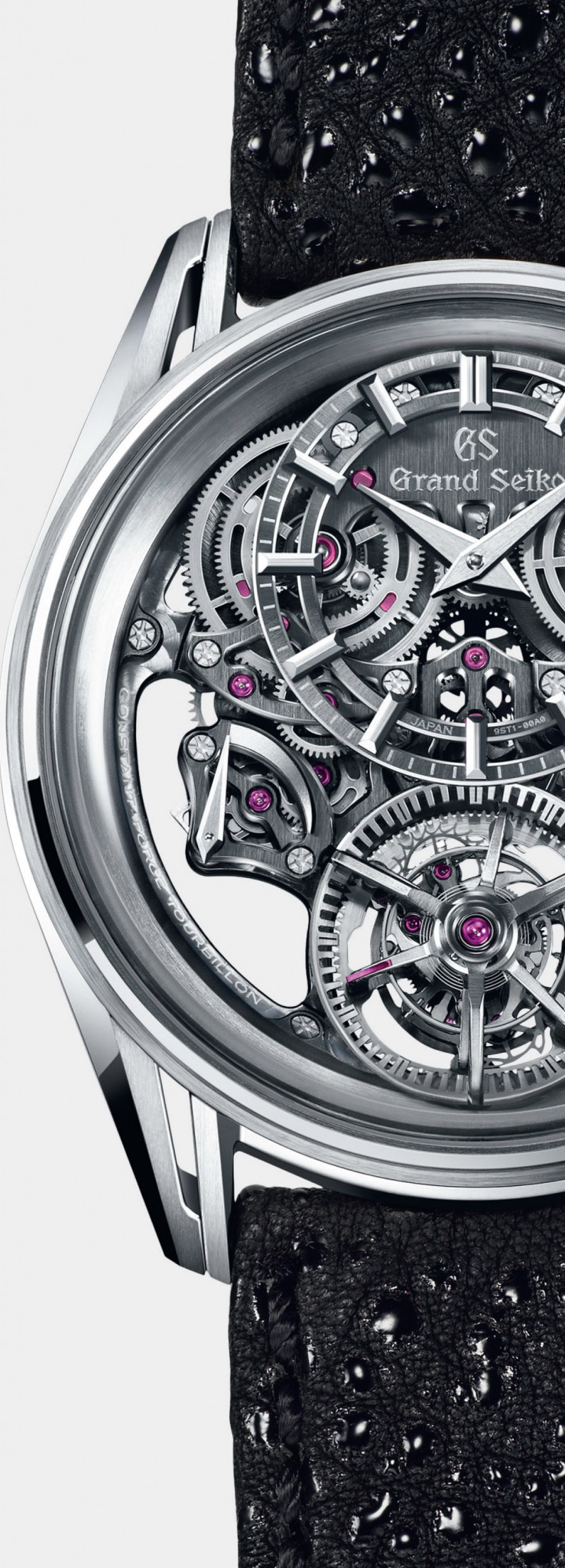 Естественно, не обошлось без «большой триады» часовых усложнений — турбийона, репетира и вечного календаря. Самым обсуждаемым турбийоном стал Grand Seiko Kodo Constant-force Tourbillon, который воплотил в жизнь концепт японской мануфактуры, анонсированный ещё в 2020 году. В калибре 9ST1 впервые каретка турбийона и механизм постоянной силы объединены в общий интегрированный модуль, скомпонованный на одной оси и фактически работающий в полном симбиозе без дополнительных передач. Поражает и отделка скелетонизированного калибра, выполненная в традиционной стилистике японских самурайских доспехов. Часы представлены в корпусе 43,8 мм из платины, серия ограничена 20 экземплярами.