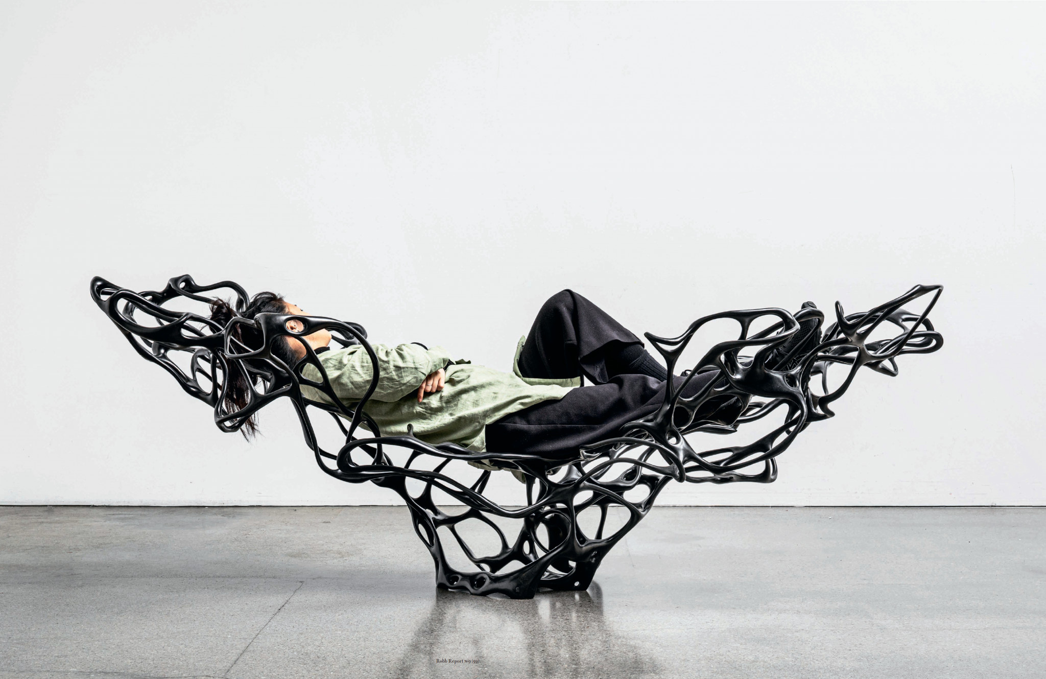 При этом самое интересное происходит вне сферы массового производства — в тот момент, когда машина становится инструментом, без которого невозможно создать объект, настолько он сложный. Основной форпост этого направления — Европа, а точнее Италия, Нидерланды и Дания, где мебельное производство веками опиралось на мастерство ремесленников. 3D-принтер предлагает свежий подход к традиции, а в некоторых случаях — возможность восстать против неё. Испанская компания Nagami сделала ставку на производство мебели исключительно с помощью 3D-принтеров. Как и Ларж, сооснователь фирмы Мануэль Хименес Гарсия начал экспериментировать с цифровыми технологиями ещё студентом, а позже занялся широкоформатной 3D-печатью. Но на дворе был 2009 год, и информации об интересовавшем его предмете было мало. «Мы пытались понять, как работает привычный всем принтер размером с небольшую коробку, чтобы сделать машину, способную печатать значительно более крупные объекты», — рассказывает он. В конце концов Гарсия приобрёл манипулятор ABB длиной 2,5 метра, который применяют в автопроизводстве. Этот аппарат позволил Nagami наладить выпуск сложной мебели, включая кресла Voxel, которые на первый взгляд кажутся хаотичным переплетением компьютерных проводов. Оказалось, что объект, изготовленный роботом, может получиться не менее выразительным, чем тот, что создан рукой человека.