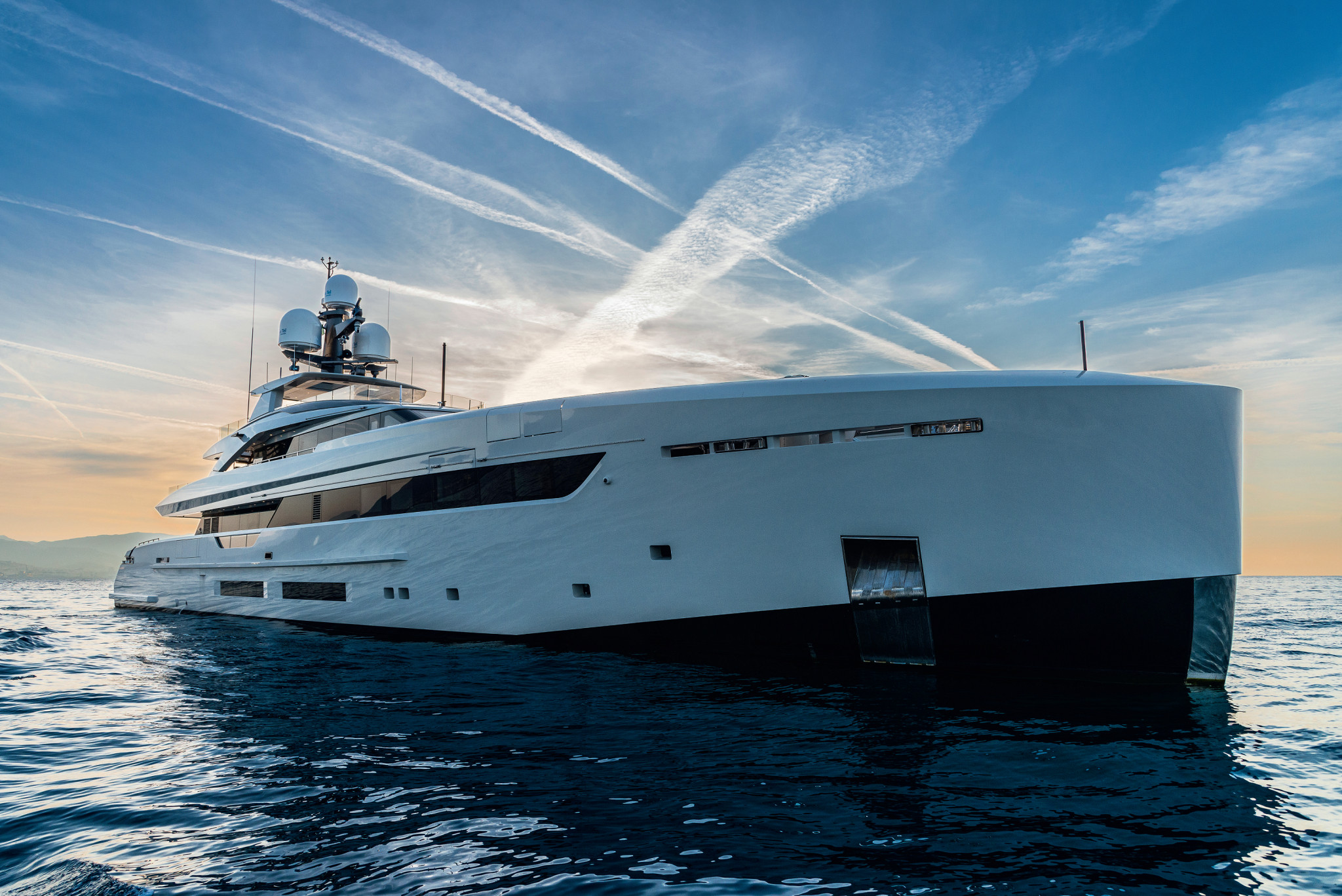 В экстерьере этой моторной яхты (дизайнеры Филипп Бриан и Энрико Гобби нарисовали её эскизы во время сеанса видеоконференции, когда мир сидел в карантине) угадываются черты яхты парусной: узкий корпус с острой скулой, вертикальный форштевень, пропорции в целом. Подводная часть корпуса выполнена по фирменной технологии Briand Optimized Hull, чтобы улучшить мореходность. Бриан, возглавляющий студию Vitruvius Yachts, разработал проект Vitruvius несколько лет назад, и вот к весне 2023 года верфь Rossinavi воплотила смелые идеи в жизнь. 66-метровое судно валовым тоннажем 1172 гросстонны готово предоставить двенадцати гостям всю мыслимую роскошь для морских путешествий, от спа-центра до громадного пляжного клуба с целой армадой водных игрушек. Интерьер Энрико Гобби и его бюро Team for Design отделали с истинно итальянским вкусом.