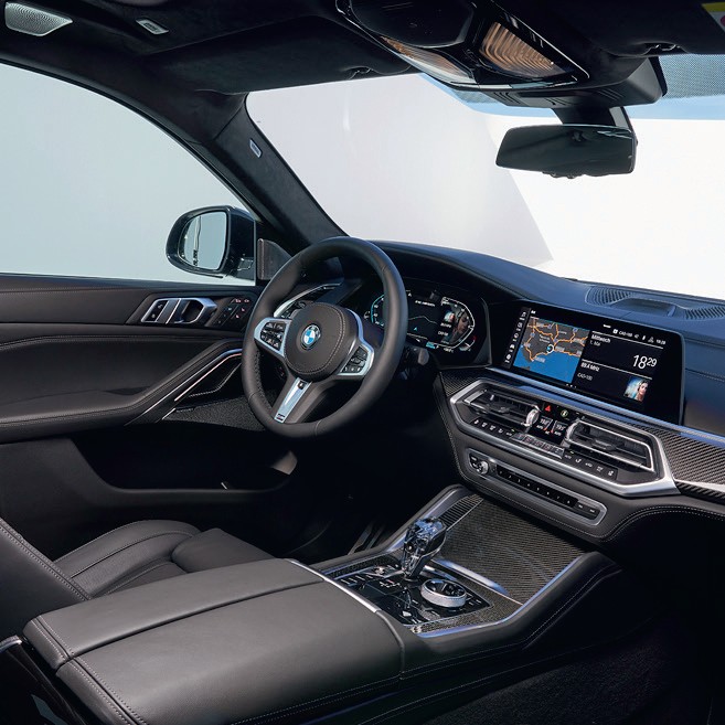 Кроссовер BMW X6 появился в конце 2007 года, а в серию пошёл с 2008-го. Миру тогда явили «новый класс автомобилей»: кроссовер с внешностью купе. И вот перед нами уже третье поколение. Он стал ещё спортивнее, ещё мощнее и ещё привлекательнее. Очевидная новинка — «светящиеся ноздри»: встроенная в решётку радиатора белая подсветка Iconic Glow, которая активируется либо при открывании и закрывании дверей, либо включается принудительно. Салон щеголяет кокпитом BMW Live Cockpit Professional с парой экранов на 12,3 дюйма и персональным ассистентом, откликающимся на фразу «Hey BMW». Медиа система — OS 7.0 с функцией дистанционного обновления, аудиосистема — Bowers & Wilkins Diamond Surround Sound с 20 динамиками. Можно заказать дисплеи для задних пассажиров, подстаканники с режимами подогрева и охлаждения, а ещё — стеклянные элементы салона с внутренней подсветкой (в пакет входят селектор «автомата», шайба системы iDrive, регулятор громкости и кнопка старт-стоп). Продвинутый автопарковщик дополнен ассистентом движения задним ходом, который запоминает последние 50 метров и готов в любой момент воспроизвести их в обратной последовательности. Среди опций также панорамная крыша Sky Lounge с переключаемой цветной подсветкой и площадью прозрачной части на 83% больше, чем раньше.