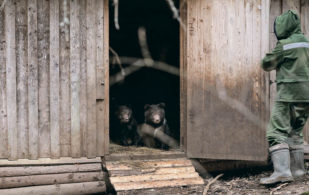 Чтобы это стало возможным, медвежат растят по специальным алгоритмам: они не должны видеть людей, нюхать людей, ни в коем случае не должны привыкать к рукам и голосам людей.