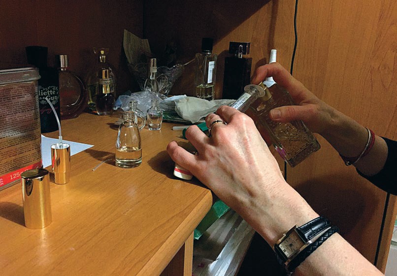 Россия не чувствует Донбасс — сложно и невыносимо. Мы иногда узнаем про обстрелы, про переговоры Большой четверки, выдачу российских паспортов. Но не чувствуем, как так жить. Этот репортаж — способ почувствовать жизнь в Донецке буквально через запах. Наша героиня, Злата Н., — парфюмер, она привозит флаконы духов через линию разграничения и разливает их в пузырьки для местных — от 15 до 5 мл, маленькие — для совсем бедных. Она чувствует запах города: запах разбитой снарядом квартиры, запах Путиловки, запах горя, запах войны, запах застоя — самый тяжелый.