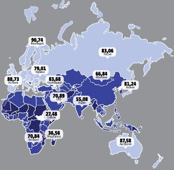 Карта состояния окружающей среды однозначно свидетельствует о том, что технический прогресс ведет не к ухудшению, а к улучшению экологической обстановки, во всяком случае, в постиндустриальном обществе. Самые чистые страны — в основном самые технологически развитые, а самые грязные — доиндустриальные страны Южной Азии и Африки. У России в этом списке все довольно хорошо — правда, не из-за развитости прогрессивных экологически чистых технологий или альтернативной энергетики, а скорее, из-за сравнительно небольших объемов промышленного производства, «размазанных» по гигантской территории. А если считать индекс отдельно для Москвы, как и для других мегаполисов, то экологическая обстановка и у нас перестает выглядеть благополучной.
