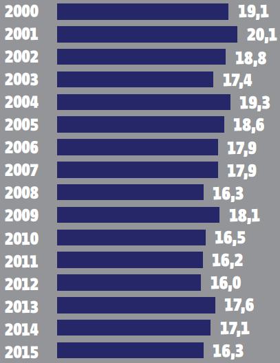 Среднегодовая концентрация вредных частиц (пыли, плесени) в воздухе (мкг/м3)