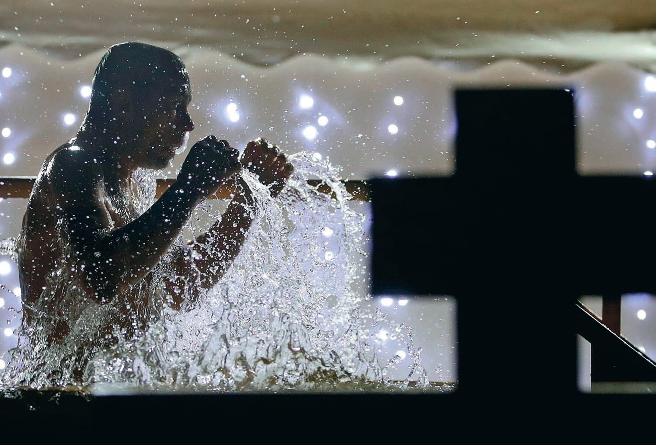 — Вы когда из купели выйдете, расслабьтесь. Все зажимаются от холода, а надо расслабиться, — делится советом с нерешительной одинокой дамой бывалый сотрудник МЧС. — Тогда обязательно словите эту эйфорию.