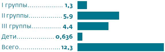Количество людей с ограниченными физическими возможностями в России, по данным Росстата на 1 января 2017 года (миллионы человек)