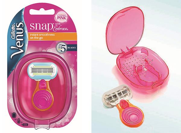 Для женщин, которые живут в режиме постоянной активности, компания Gillette разработала новую бритву Venus Snap. Оснащенная полноразмерной головкой Embrace с пятью лезвиями, но с миниатюрной ручкой и компактным стильным футляром, бритва не займет много места в сумочке или портфеле; при этом обладательница Venus Snap может быть уверена, что ей в любое время гарантирована гладкая кожа.