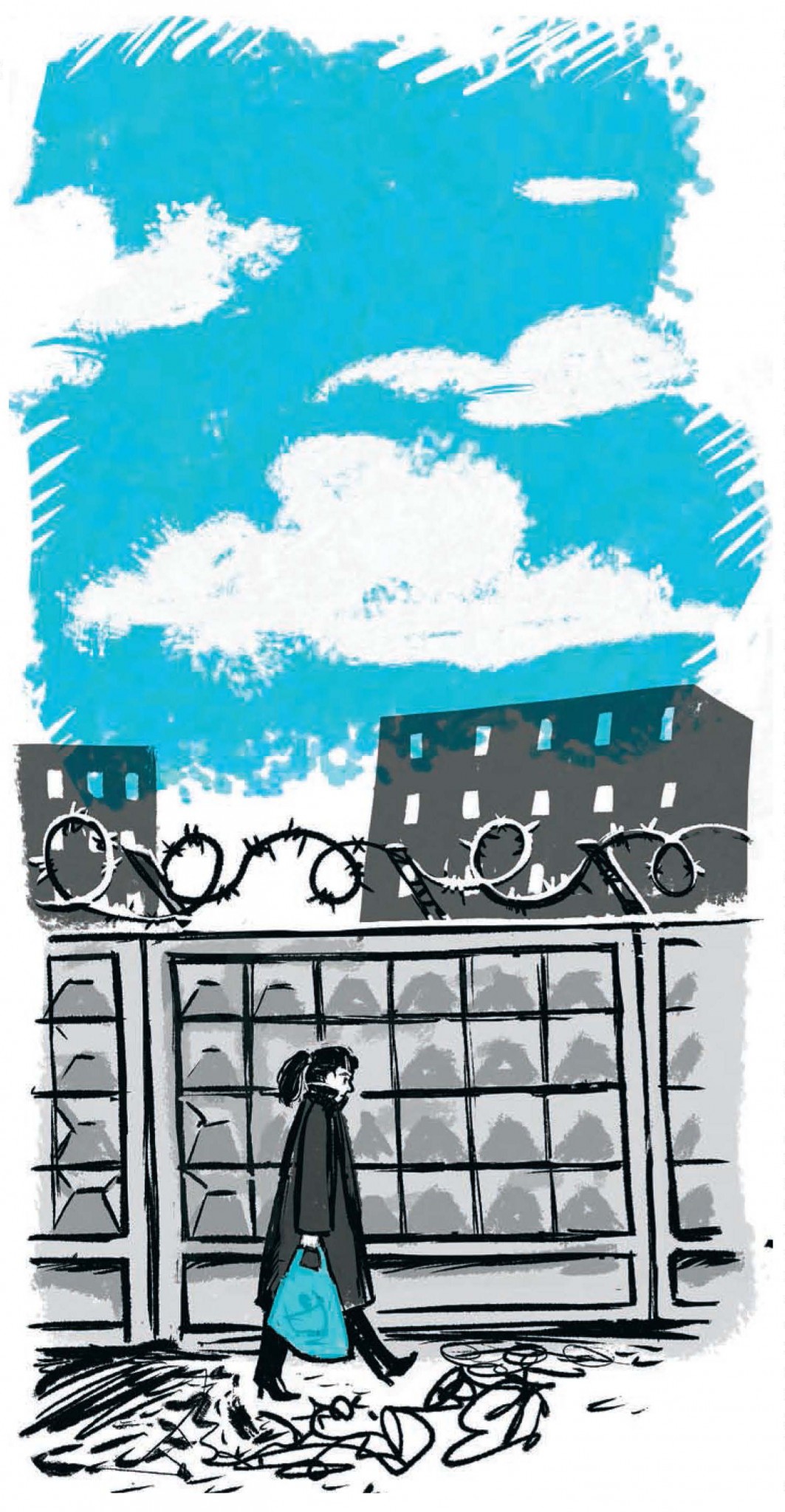 Двухметровый белый забор тянется уже очень долго. Я иду с тяжелой сумкой за полтора часа до своей электронной очереди и очень боюсь.