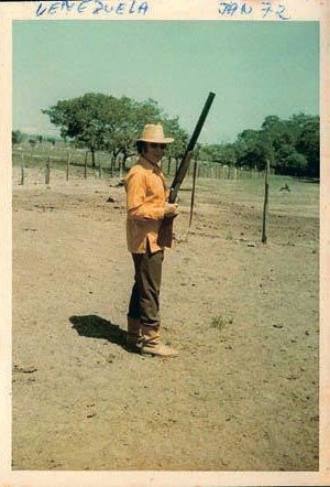 позирует с ружьем