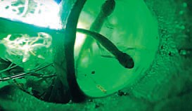 В сфагновых болотах Северной Америки живут настоящие чудища — хищные растения саррацении пурпурные. Своих жертв они заманивают в наполненные сладким соком ловушки из листьев, напоминающие кувшины. Когда жертва попадает в смертельный капкан, личинки, бактерии и простейшие, населяющие сок в кувшинах, расщепляют добычу и передают растению питательные вещества. Считалось, что в лапы чудища попадаются только насекомые, но оказалось, что в кувшинах саррацении часто (в 20% случаев) можно встретить и мелких позвоночных — амбистом. Эти земноводные попадают в ловушку во время погони за мотыльками или мошками; незадачливые охотники сами становятся добычей.