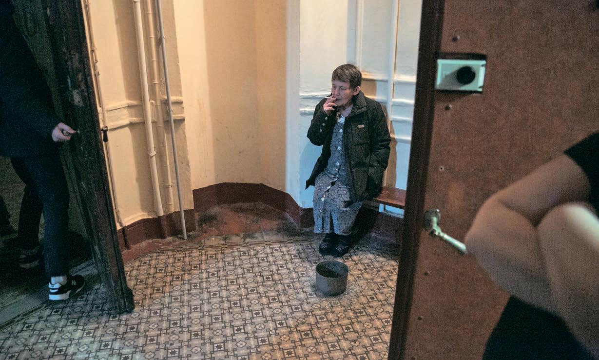 Мать троих детей, преподаватель вуза, пускает нас в свою коммуналку, но не дальше общего коридора. Жалуется, что коренные жильцы умирают, а новые снимают квартиры-комнаты, и с ними контакт не устанавливается. Даже не столько жалуется, сколько отмечает как факт жизни.