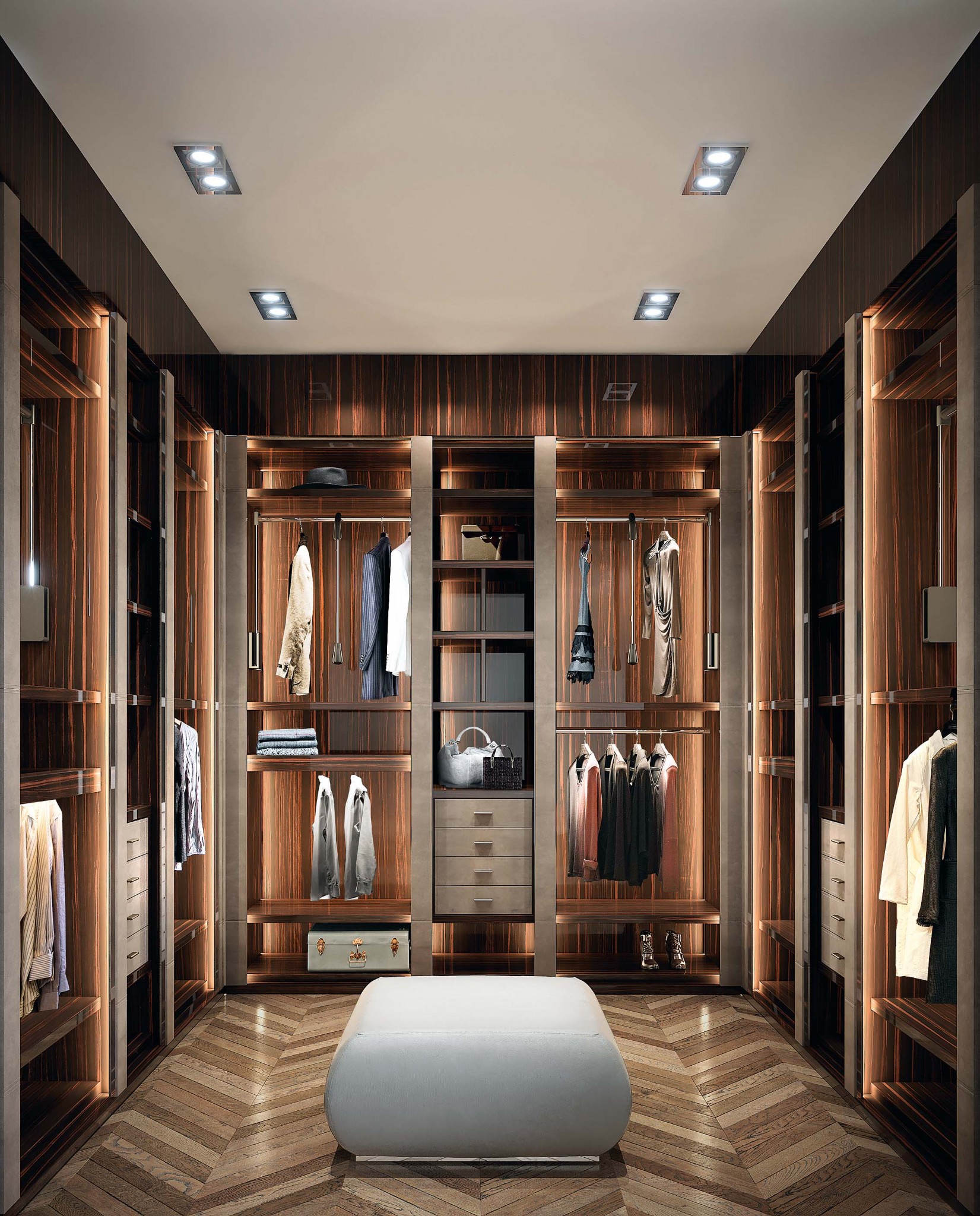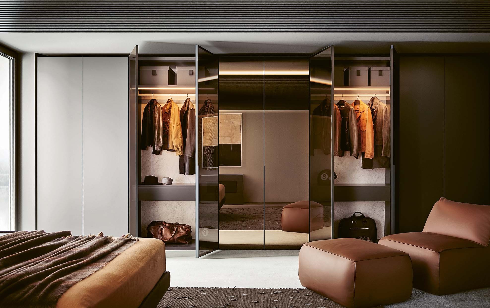 Создать в доме персональный филиал миланского бутика предлагает фабрика Pianca. Её дизайнеры придумали модель Milano со стеклянными дверями и универсальным наполнением, которое позволяет элегантно развесить и разложить одежду и аксессуары. Впрочем, есть возможность дополнить шкаф непрозрачными или зеркальными дверцами. www.pianca.com