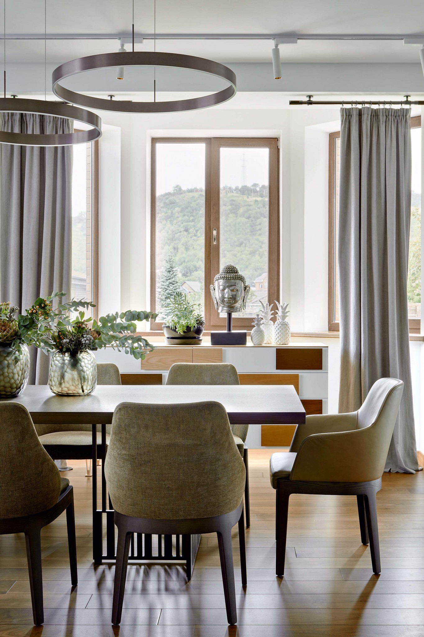 На создание этого современного, минималистского интерьера Максима Гаевского вдохновили природа и панорамные виды