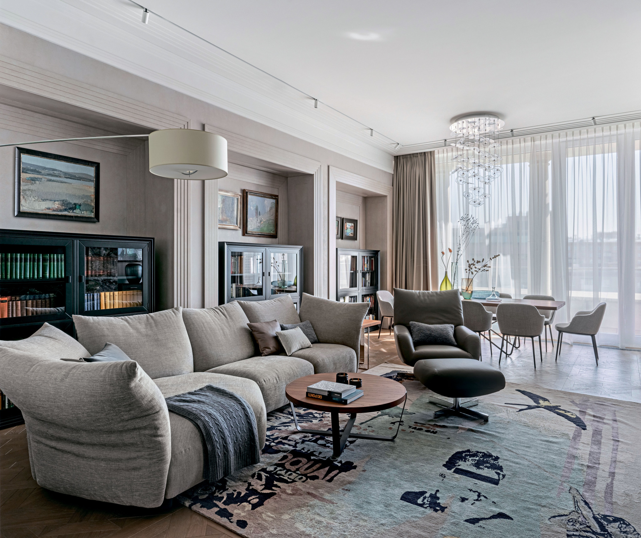 Новая работа Жанны Кочуровой — квартира в центре Москвы: интерьер спокойный, выдержанный, элегантный, с мебелью дизайнерских марок и предметами искусства