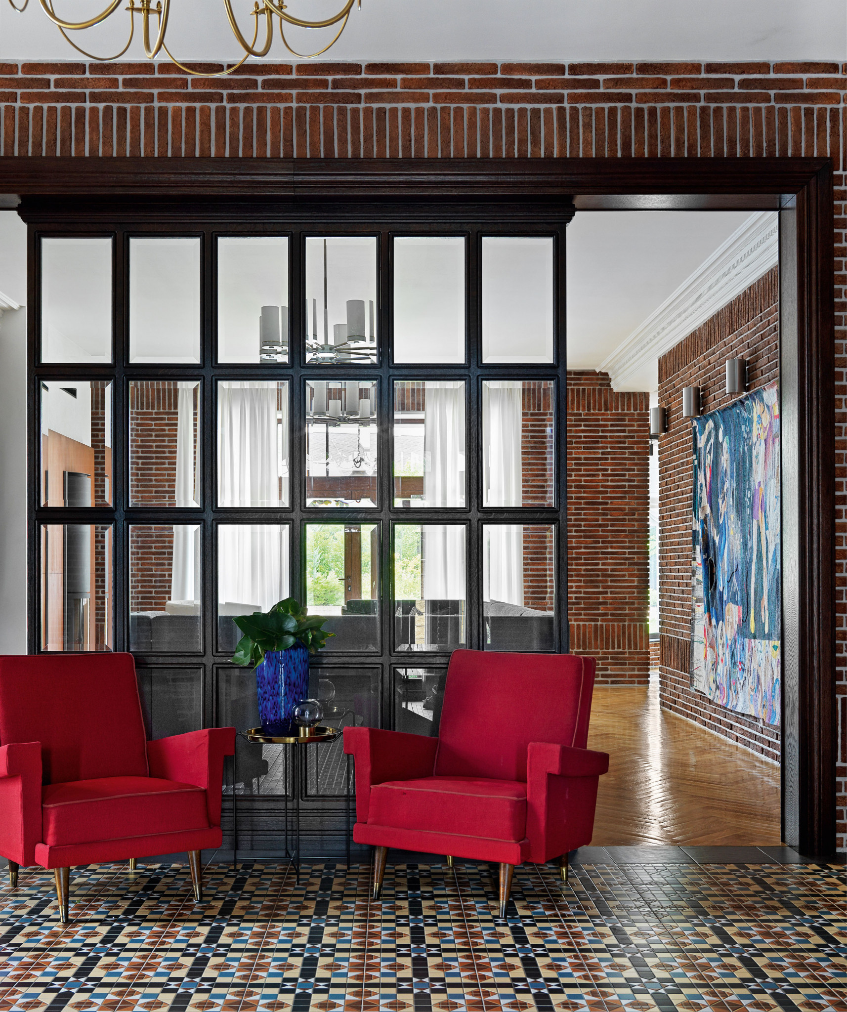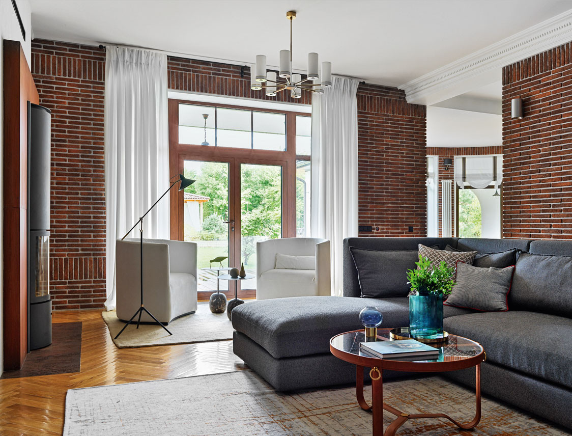 Брутально, по-мужски, в духе 60-х годов дизайнер Мария Фильштинская оформила интерьер загородного дома