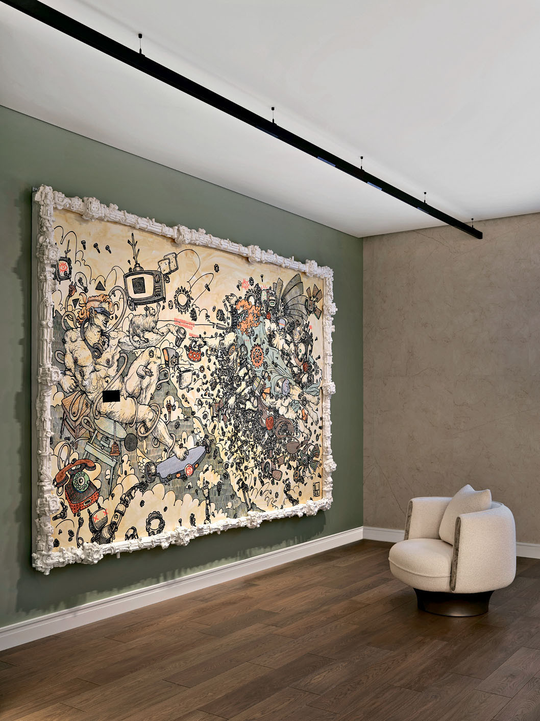 Домашний кинотеатр украшает картина «Сотворение админа» с рамой, стилизованной специально под произведение, центр современного искусства Кайрос