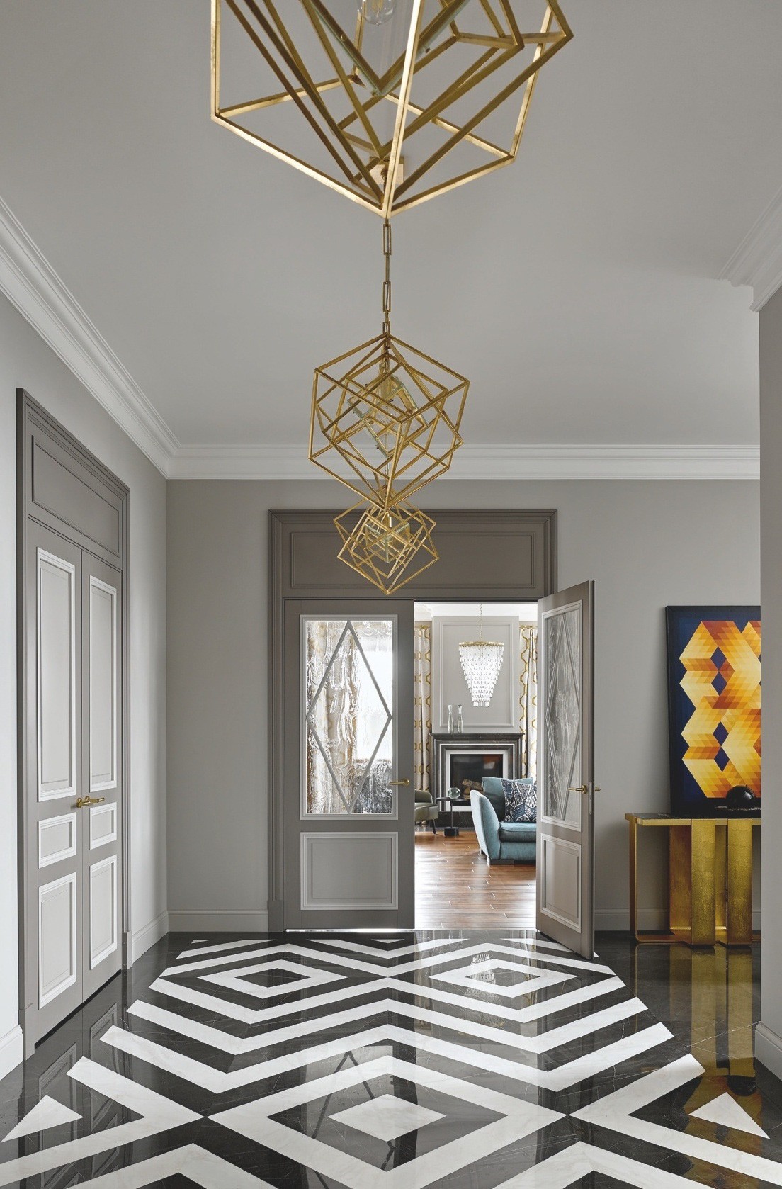 Для своих давних заказчиков дизайнер Ксения Иванова создала эклектичный интерьер, в котором гармонично соединились элементы ар–деко, классики и современного стиля