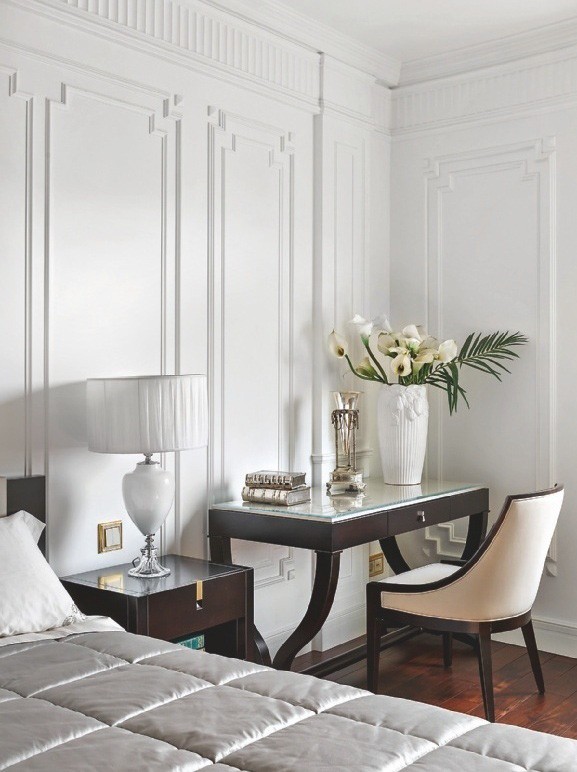 В новый элитный дом в историческом центре Петербурга заказчики — семейная пара — переехали после того, как главу семьи перевели по работе из Москвы в Северную столицу. Интерьер супруги видели по-разному. «Хозяин отдавал предпочтение добротной классике в английском стиле, — поясняет Иван Комогорцев.—Его жене больше нравится американская классика. Решающим моментом стало расположение квартиры. Нас поразили панорамные окна гостиной. Из них открывается великолепный вид на Елагин остров и реку Средняя Невка. Не хотелось, чтобы плотный, насыщенный в цветовом плане интерьер конкурировал с такими потрясающими видами. Поэтому мы решили создать лёгкое, светлое пространство в стиле Ральфа Лорена, в духе роскошных апартаментов на Манхэттене». Основным декораторским приёмом стал контраст.