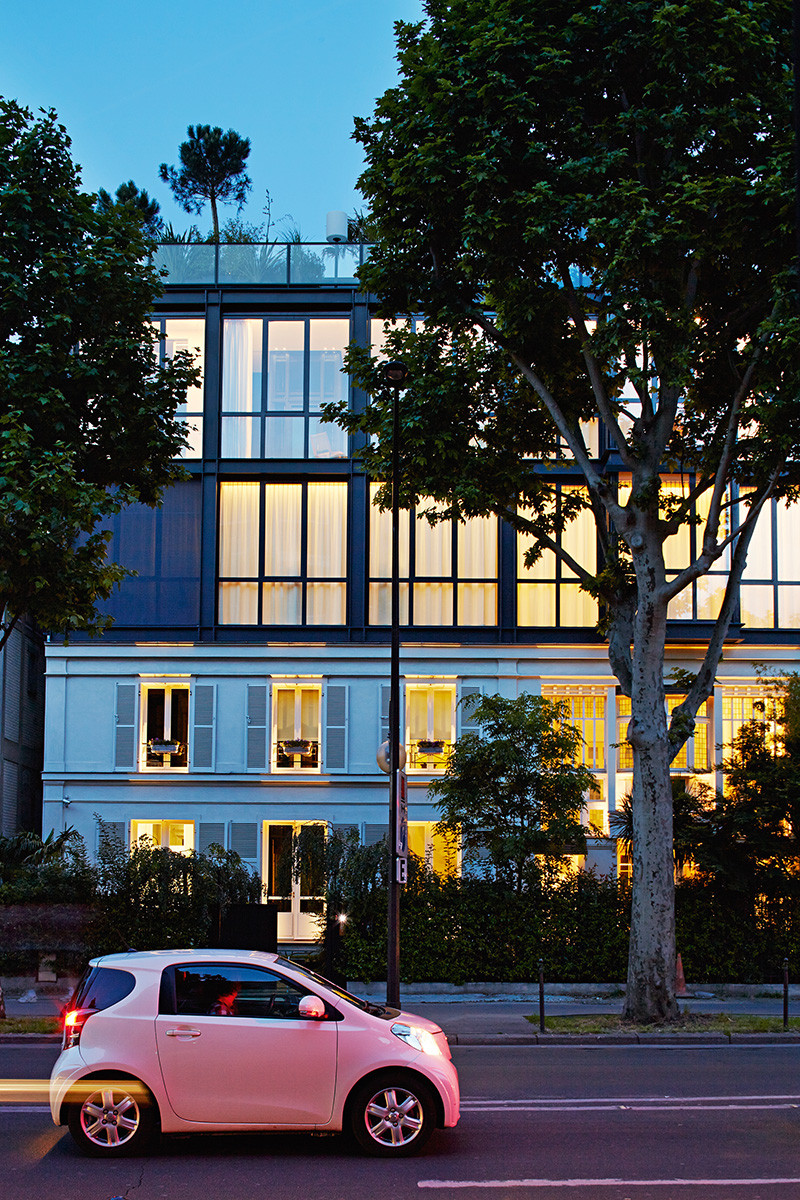 Архитектор Жозеф Карам проделал колоссальную работу. Этот титанический проект ждал своей реализации несколько лет, ещё два года ушло на строительство. Караму достался особняк у Булонского леса, датировавшийся началом прошлого столетия. Эта постройка в стиле северный модерн стала отправной точкой для дома в его нынешнем изводе. Архитектор называет проект даже не реновацией или реконструкцией, а реабилитацией, на больничный манер.