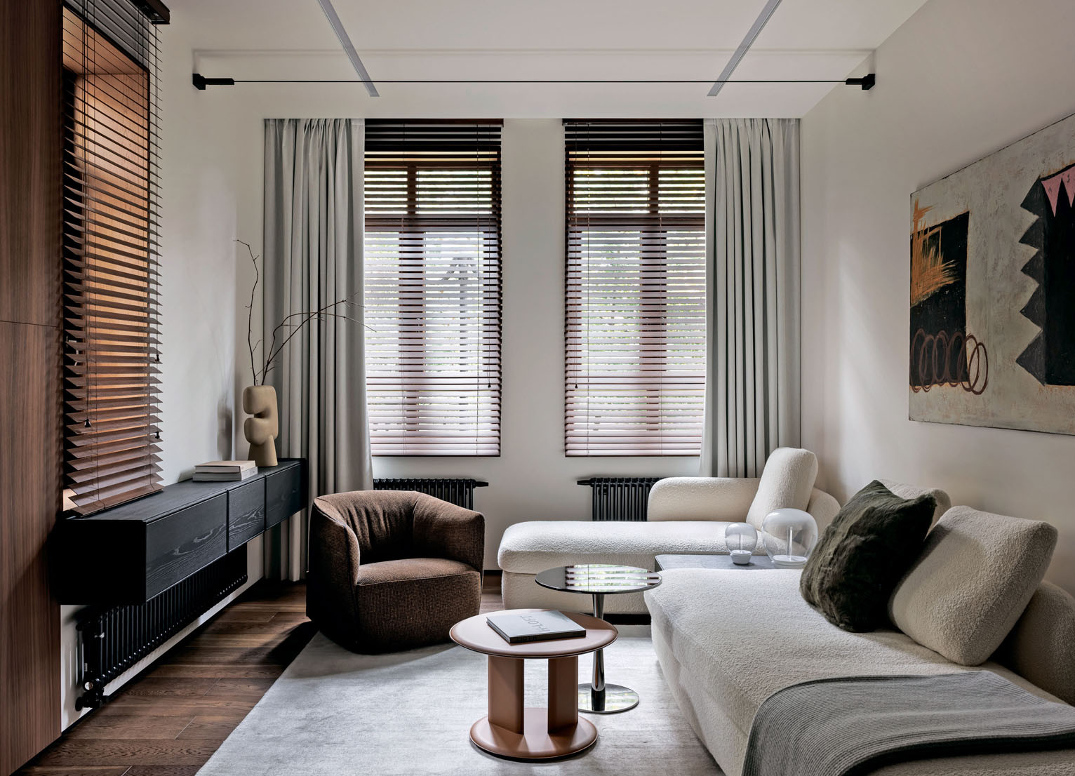 Изысканный современный стиль, вдохновленный природой, нашел свое воплощение в историческом районе Амалиенау в Калининграде. Интерьер квартиры, окруженной вековыми каштанами, выдержан в теплой, глубокой палитре натурального дерева, продолжая диалог с пейзажем за окнами. Архитектор Татьяна Генне создала этот интерьер для семьи из трех человек. Основными требованиями стали сдержанный минимализм и использование исключительно натуральных материалов, что было обусловлено не только эстетическими предпочтениями, но и необходимостью создать безопасную среду для ребенка-аллергика. «Мне всегда интересно работать в кардинально разных стилях. Я сознательно избегаю тиражирования даже удачных решений, так как это позволяет сохранить свежесть восприятия. Поскольку каждый заказчик уникален, мои проекты закономерно обретают индивидуальные, порой контрастные черты. Вид на невероятно красивые, величественные каштаны вдохновил меня на смелый шаг — добавить в монохромную палитру красно-коричневые акценты», — рассказывает автор проекта Татьяна Генне.