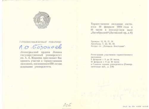 Почетный профессор Санкт-Петербургского университета Асалхан Ользонович Бороноев в 1969 году участвовал в торжественном заседании по случаю 150-летия ЛГУ в БКЗ «Октябрьский», а также в 1999 году — по случаю 275-летия Университета в Мариинском театре.