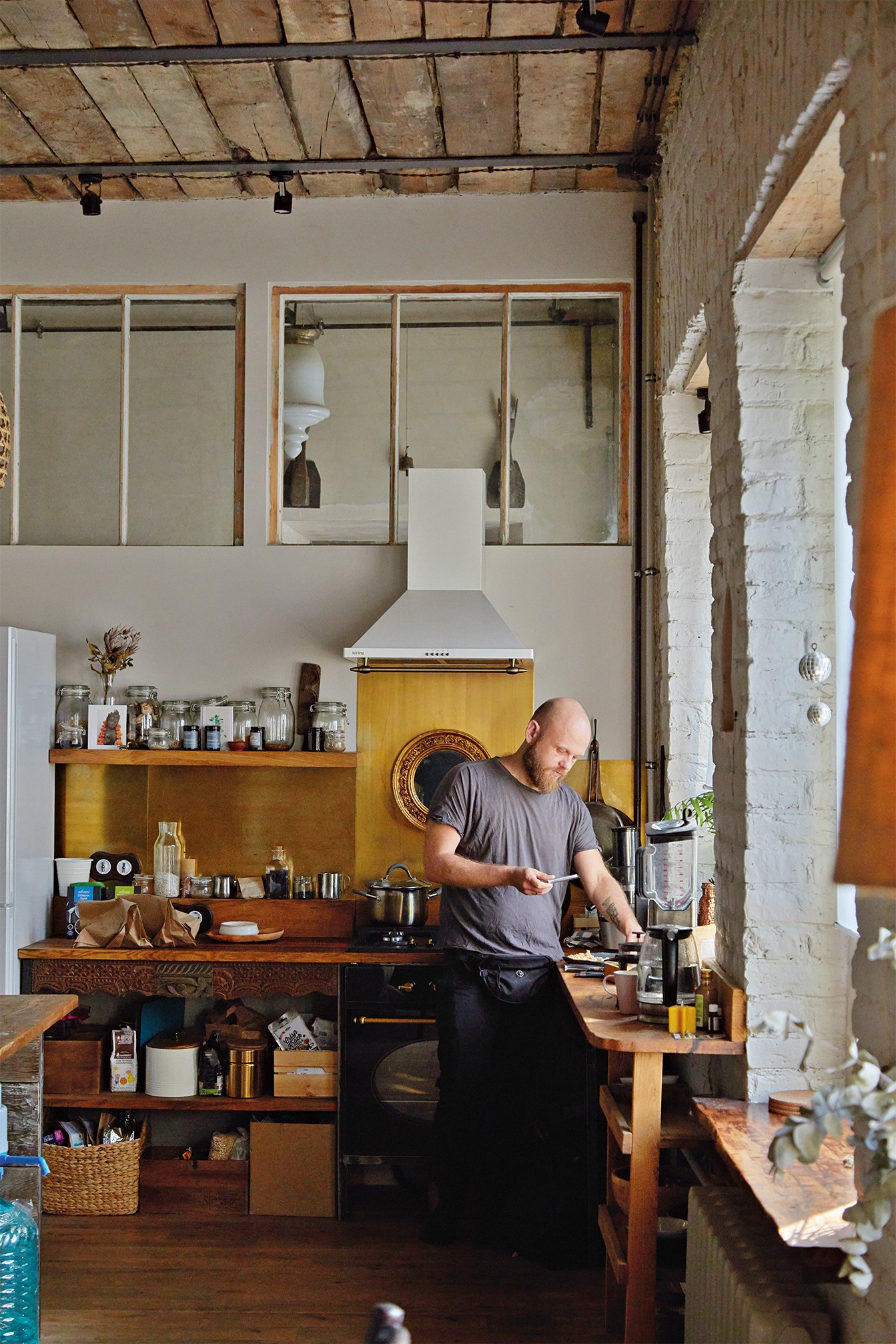 В этой семье намешаны разные традиции: Эли из Казани, Гордей — из Хабаровска, встретились в Таиланде, поженились, вместе поехали на Бали, прожили там шесть лет. Построили дом, про который Эли очень здорово говорит: «Он — будто кусок меда». В один момент пришло решение: пора возвращаться в Россию. Выбрали Питер. Наверное, по принципу контраста.