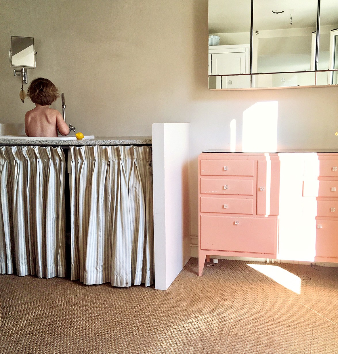 Просто и при этом живописно декорированный дом отлично уживается с тремя детьми, ведь они — главный источник вдохновения Эжен. Дети растут, меняются, давая Эжен новую энергию для творчества. А еще они учатся красоте и стилю у своей мамы, как когда-то Эжен училась у своей. «Я думаю, что важно передать способность оглядываться вокруг, развивать свой вкус, наблюдать за формами и цветами, замечать оттенки во всем. Учиться надо не только в школе, а везде: в музее, на прогулке, выбирая одежду в шкаф у, накрывая стол к ужину. Конечно, все это должно быть не напряжно, органично и для вас, и для детей!» — говорит Эжен.