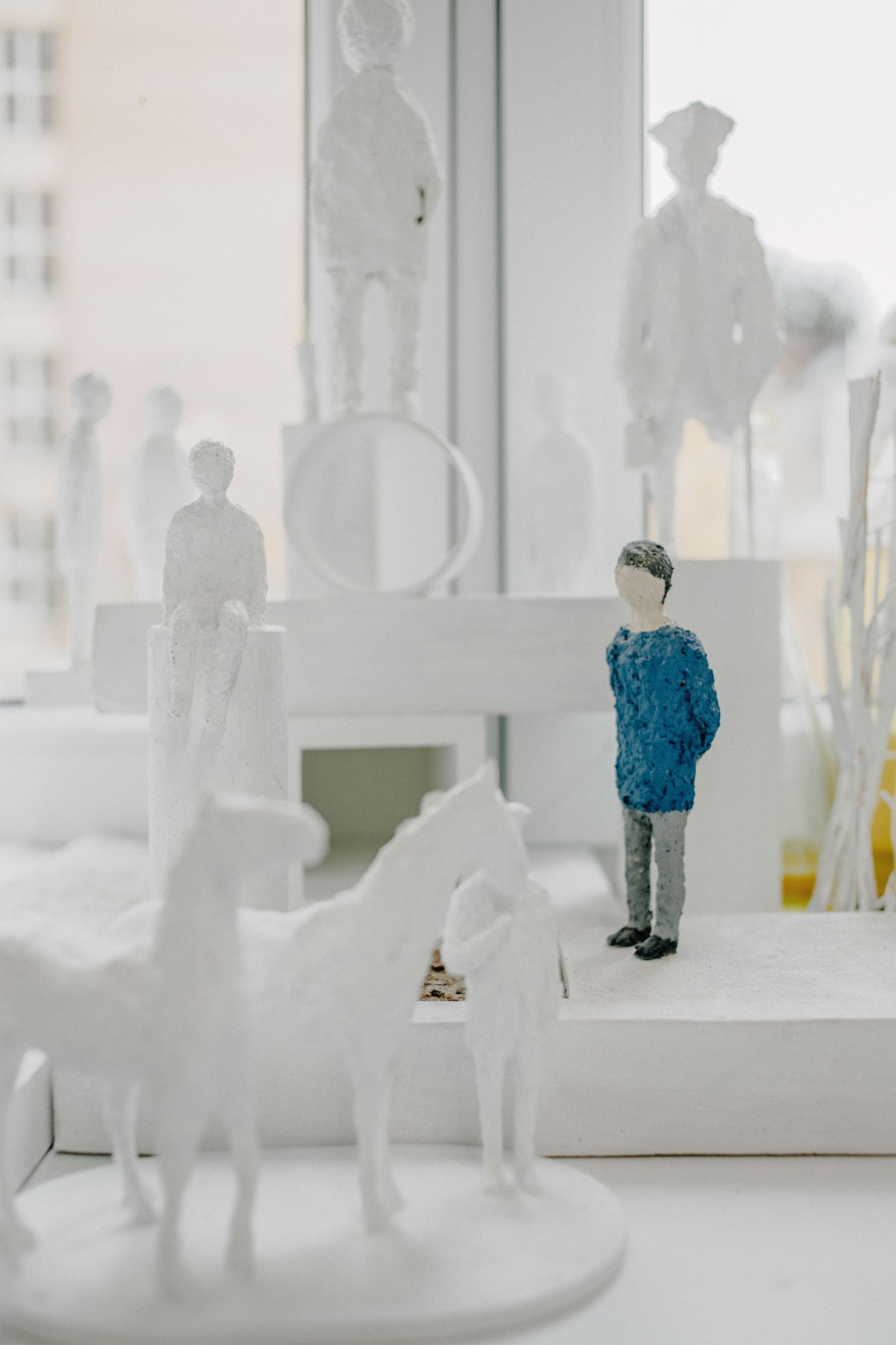 Несмотря на близость Арбата с его зазывалами и музыкой на каждом углу, в мастерской удивительно тихо и умиротворенно: красивый синий кофейник варит кофе, маленькие скульптурные человечки Егора смотрят на гостей с широкого подоконника.