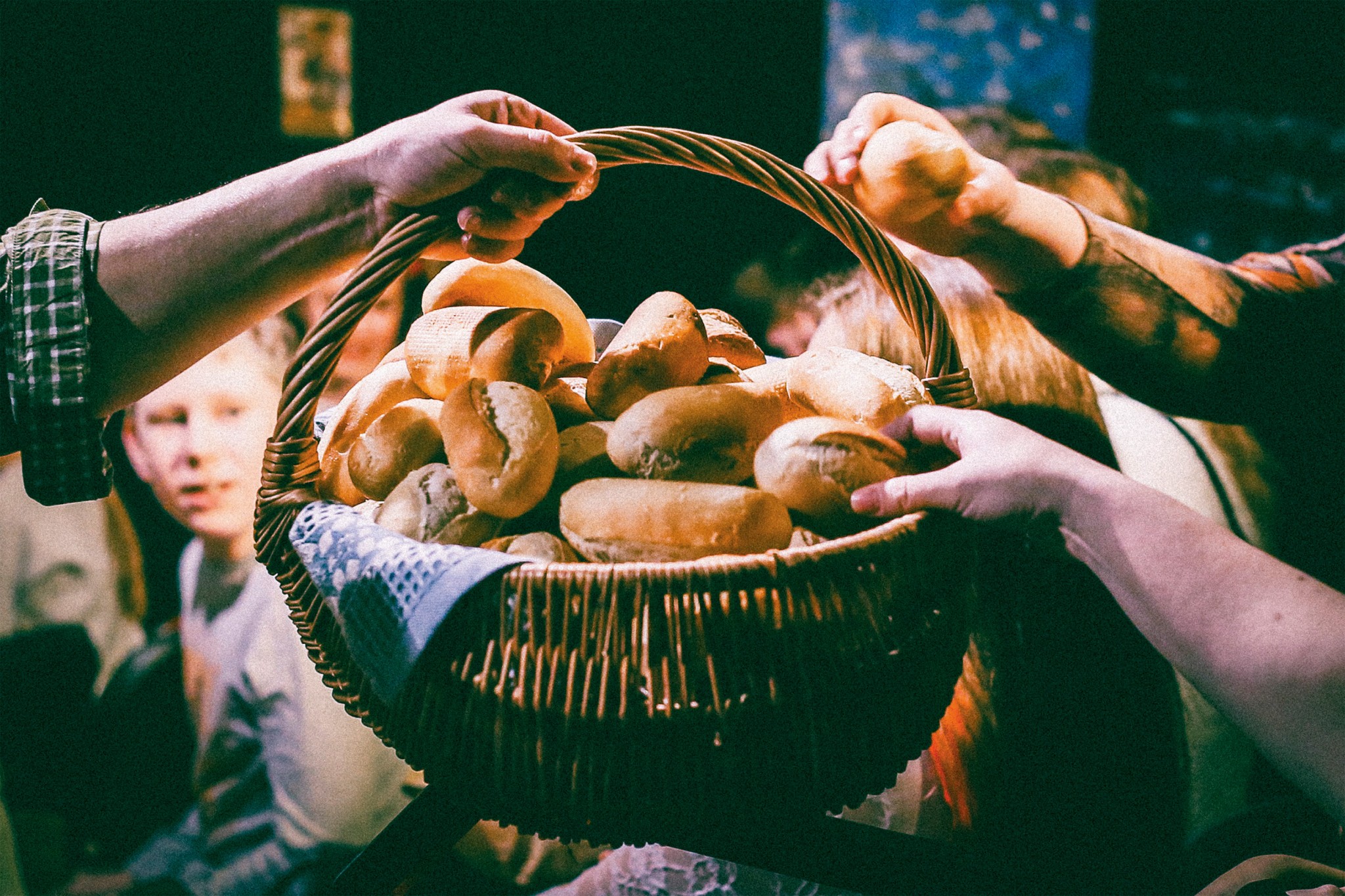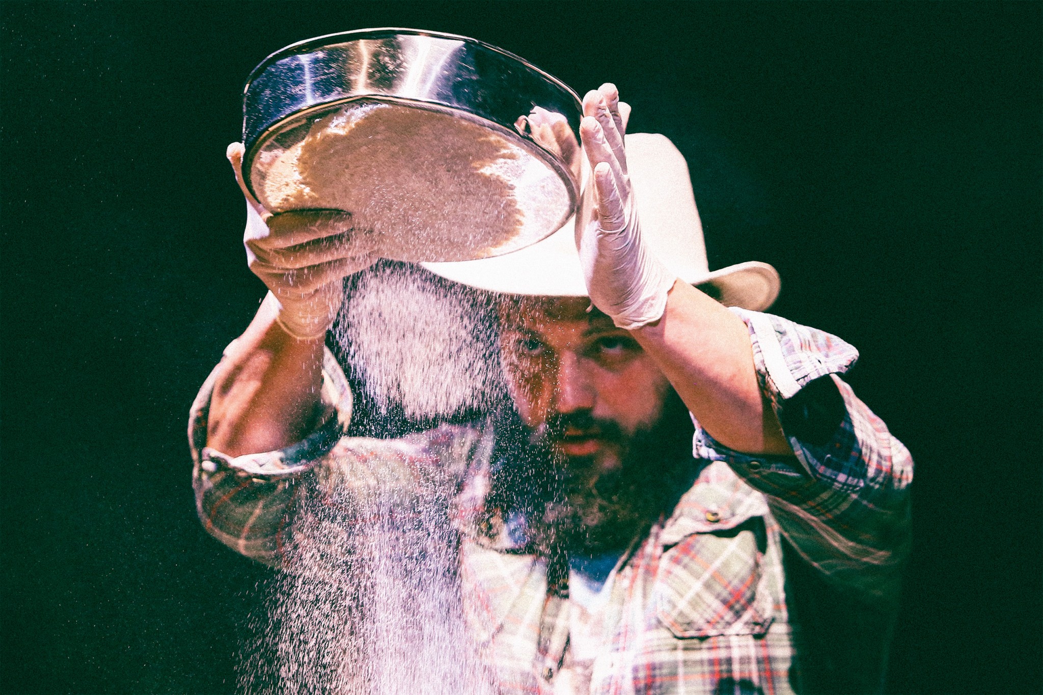 Вообще все, что происходит со спектаклем, — это тесто. Это же удивительно, как не всегда хлеб получается. Вот вроде ты же знаешь рецепт, а там столько факторов влияет на это. И все эти наши «игрушки», умывалки, тактильные вещи в спектакле — это для того, чтобы снять зажимы. И чтобы понять, что сосед, который рядышком, — не страшный человек, он симпатичный человек! Давай попробуем обнять его. И это все жернова, через которые люди проходят… А дальше вопрос: какой будет помол? Мука мелкого помола, чтобы сделать что-то более нежное, или мука грубого помола — из нее и тесто другое, и хлеб другой. Но и он полезен.