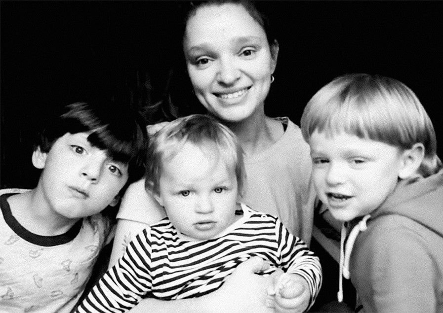 Лена, 33 года, искусствовед и педагог, будущий арт-терапевт; Лева, 7 лет, будущий палеонтолог; Веня, 4,5 года, будущий ученый; Мика, 1,5 года, с профессией пока не определился.