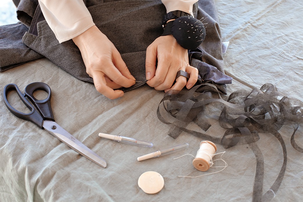 - Мел/мыло, распарыватель, булавки, иголка, нитки, утюг, клеевая лента