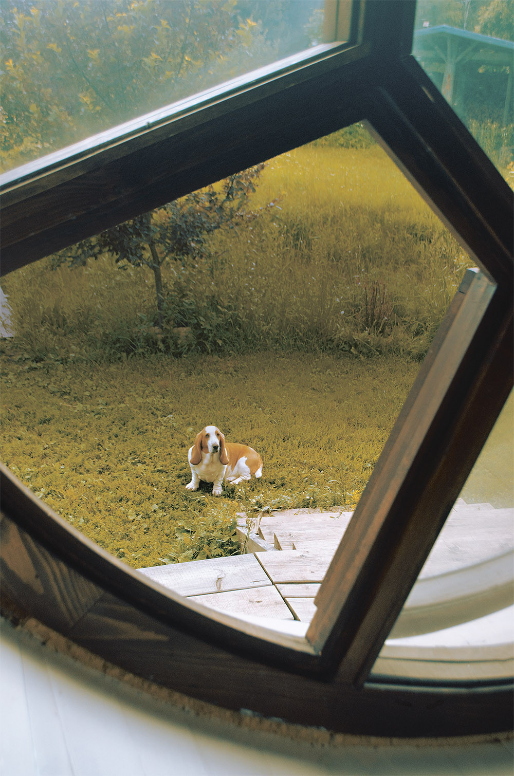 Недалеко от Тарусы, на краю деревни Похвиснево, среди молодого леса стоит дом, в который хочется привести каждого. Дом этот круглый, саманный, то есть из соломы и глины. Вокруг него нет заборов, зато есть современный ленивый лесосад. Живут в нем художники Миша Самолетов и Женя Бондаренко, бассет(ка) Татами, мейн-кун Тоторо и кошка Юки (по-японски — «снег»).