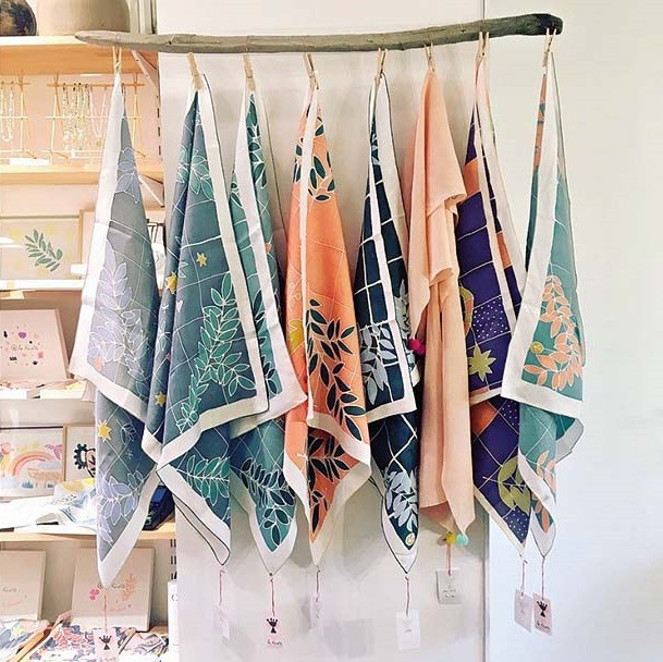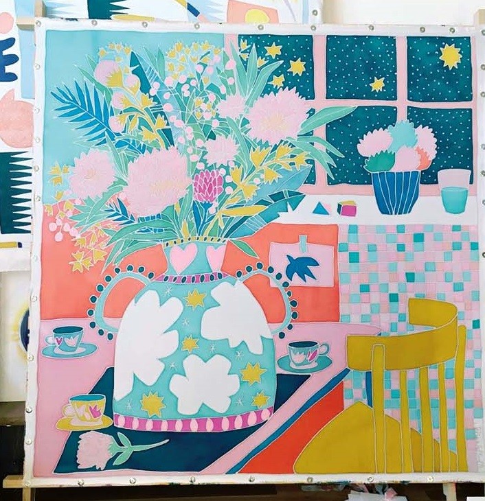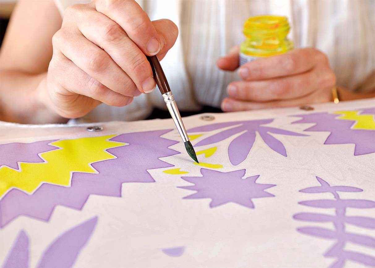 Парижанка Сокина Гилемо — многостаночник: придумывает инсталляции, составляет коллажи, делает принты и офорты, рисует на бумаге и ткани. Ее батики становятся абажурами, платками, интерьерными панно. Еще Сокина ведет мастер-классы по батику и написала книгу «Картины на шелке». Ее работы действительно похожи на картины, витражи, богатые, «симфонические» полотна Матисса.