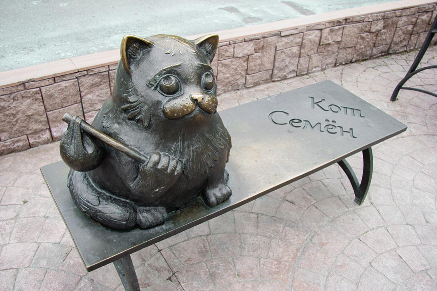 Памятник коту Семену — новая трогательная история города. Однажды семья из Мурманска отправилась в отпуск, и кота Семена как члена большой семьи решили взять с собой. На обратном пути во время недолгой остановки в Санкт-Петербурге кот сбежал, найти его не удалось. И вот спустя шесть лет, когда хозяева уже не надеялись увидеть питомца вновь, он оказался у дверей их квартиры. Облезлый, худющий, грязный, но тот самый Семен. Эта история легла в основу репортажа, который показали по местному телевидению, после чего коту решили поставить памятник. Правда, бронзовый кот весьма упитан, держит палочку с узелком и смотрит на мир добрыми глазами. Но при этом служит напоминанием о коте Семене, который преодолел огромное расстояние, чтобы вернуться в родной дом.