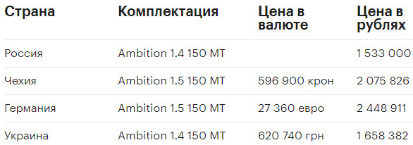 Если вы негодуете от того, что новое поколение «Октавии» в богатой комплектации теперь тянет на два с лишним миллиона рублей, посмотрите на эту табличку. В Европе начальная версия Ambition с «механикой» и теми же 150 силами под капотом (правда, при более современном моторе) может обойтись и в 2, и в 2,5 миллиона! Так что локализация лифтбека в Нижнем Новгороде однозначно спасла «Шкоду» от краха позиций. Однако если посмотреть в сторону Украины, где Octavia тоже собирается местными силами, становится понятно, что скорое подорожание исключать нельзя.
