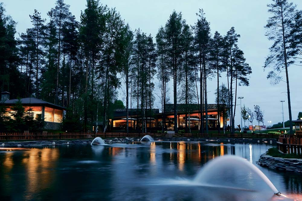 Самый большой спа в Петербурге и области, равиоли с лосем, летний тюбинг и фламинго у водопада на курорте «ОХТА ПАРК»