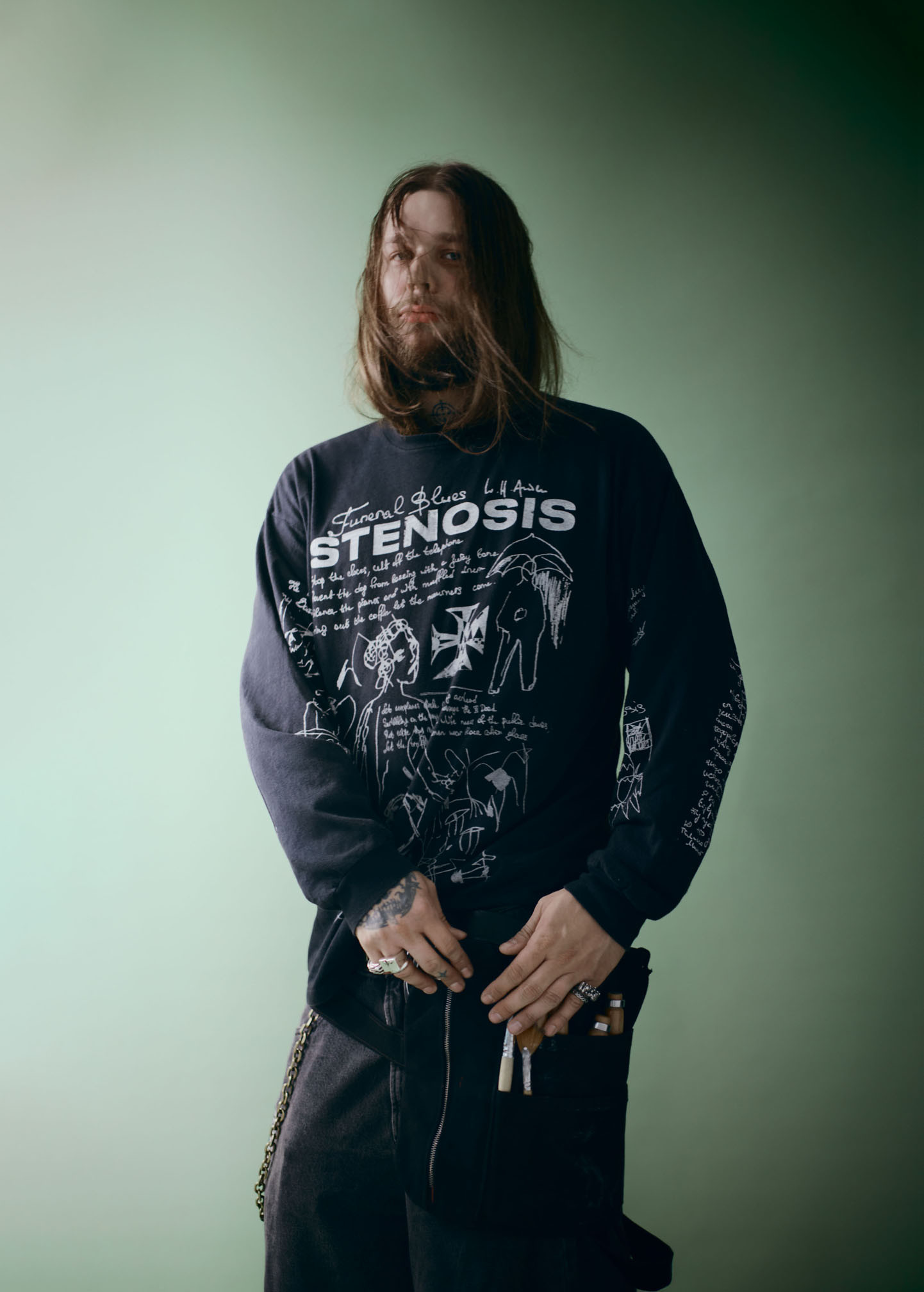 В детстве, лет в 10, я начал себя плохо вести, и меня от мамы отдали отцу на перевоспитание. А отец у меня из такой аристократической кировской семьи, и дедушка с двумя высшими музыкальными, у которого имеется свой казачий хор. Год они со мной мучились. Отправили вместо деревни в детский лагерь, записали меня в кружки заниматься, рисовать, боксировать и так далее. Я начал меняться. В 15 лет я уже увлекся музыкой и дизайном, а когда мне было 18, мы с Толей Алексеевым запустили в Кирове бренд одежды Stenosis. Делали кастомную одежду: брали джинсы в секонд-хенде, рвали их, нашивали всякого, варили в чем-то. И лучшие люди стали замечать, стали покупать, стали просить. Я начал приезжать в Петербург, подружился с Ваней Акура из «Богемы Ленинград». А теперь он с нами в Stenosis работает! В общем, в Кирове стало тесно, и в итоге я переехал в Петербург.