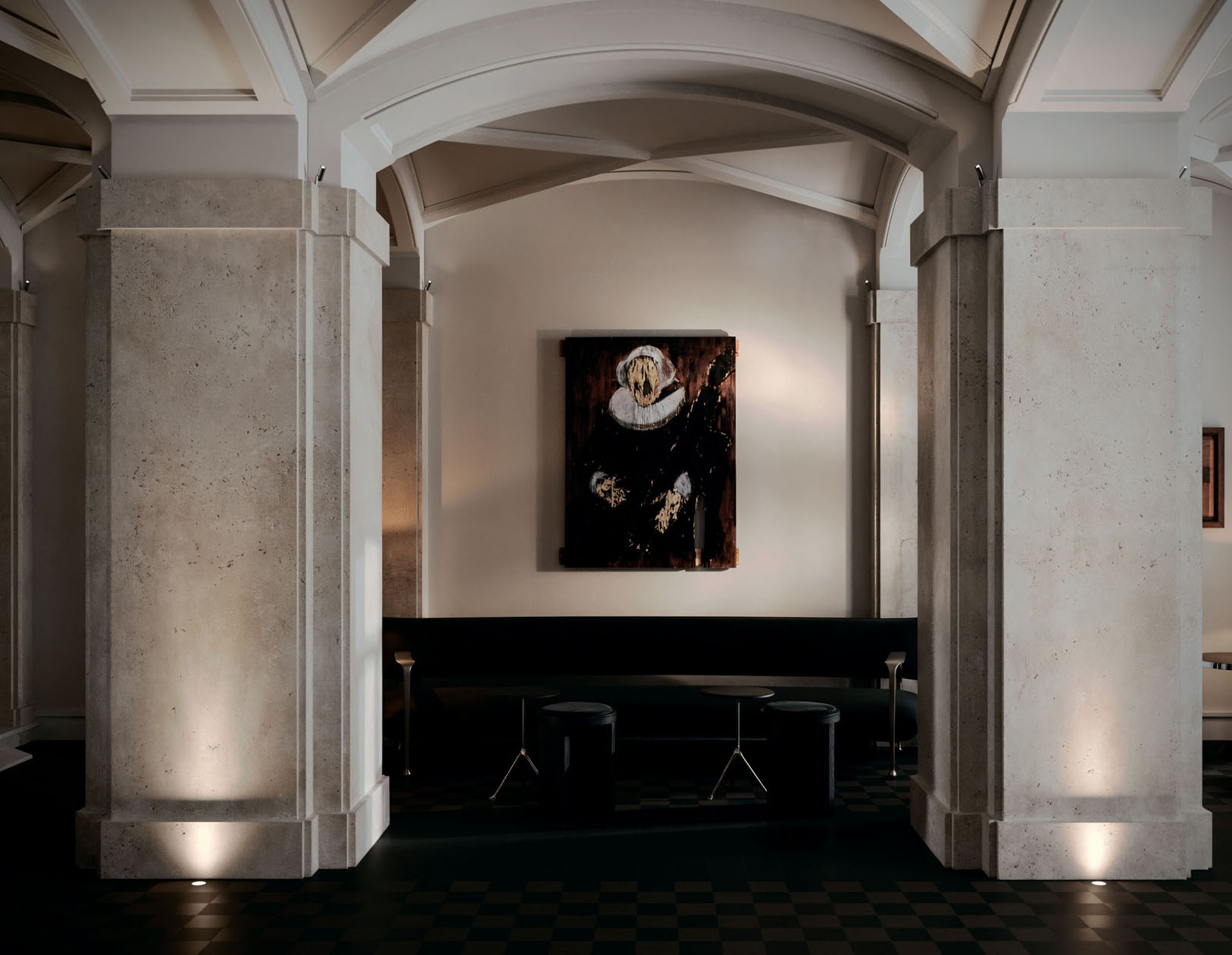 Совсем скоро откроется «Невский, 1» — проект московского ресторатора Александра Оганезова в бывшем здании Первого частного коммерческого банка. В роскошном атриуме — итальянский ресторан и винтовая лестница, которая ведет в сигарный клуб с видом на Зимний дворец, а еще огромное количество охранных обязательств и работа с КГИОП: многие элементы мы восстанавливали по архивным фотографиям. Проект уникальный по своему наполнению: винтажные кресла Joe Colombo и Carlo Scarpa, культовые барные столики Willy Rizzo, свет Viabizzuno. И сложнейшая отделка стен и потолков — великолепная работа мастерской Derevo Group.