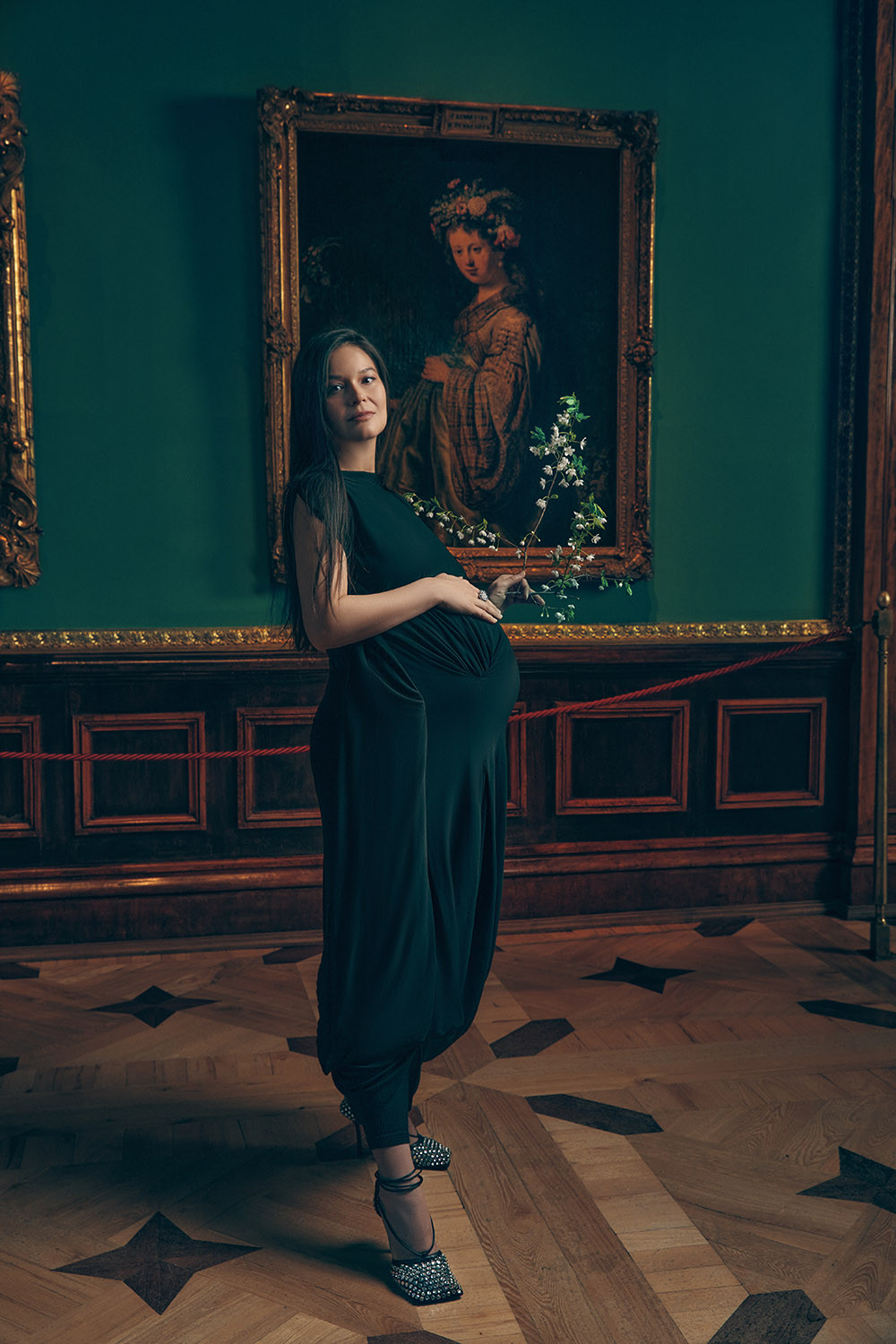 Воскресный вечер. Государственный Эрмитаж уже закрыт, и только команда «Собака.ru» шуршит по пустым залам, собирая у рембрандтовской «Флоры» команду участников одноименной литературной мистерии. Серию театрально-музыкальных перформансов придумали режиссер Жаклин Корнмюллер с продюсером и драматургом Питером Вольфом. Специально для «Флоры» литераторы и композиторы из разных стран написали тексты и партитуры про двенадцать эрмитажных шедевров — у каждого из них и разворачивается действие двенадцати перформансов: их прочли, сыграли и станцевали пятнадцать участников проекта, московские и петербургские актеры и музыканты. Эссе о «Возвращении блудного сына» Татьяны Толстой и «Пограничная история» Евгения Водолазкина о картине Хосе Риберы звучали в музее после закрытия для камерных групп: счастливчики, успевшие купить билет, переживали почти мистический опыт ночи в музее. Что-то подобное ощущает и наша группа, особенно когда участники съемки виолончелист Андрей Ефимовский и флейтист Андрей Петров начинают играть на своих инструментах и залы наполняются музыкой.