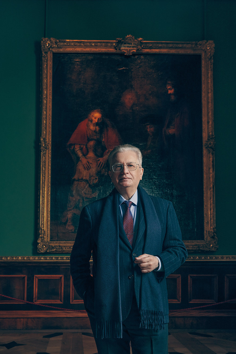 На съемке появляется директор Государственного Эрмитажа — все заметно приосаниваются и выглядят очень, очень культурно. Главный редактор Яна Милорадовская отводит Михаила Борисовича к «Возвращению блудного сына» для портрета и просит посмотреть на фотографа Ярощука, как на обретенный шедевр. Михаил Борисович ласково смотрит. Ярощук заметно краснеет, но портрет снимает недрогнувшей рукой. Сразу же в полутемном зале по-рембрандтовски и с диктофоном наперевес материализуется директор отдела эксклюзивов Ксения Гощицкая, мечта которой — прогуляться по закрытому музею с Михаилом Борисовичем — близка к исполнению, как никогда. И она исполняется.
