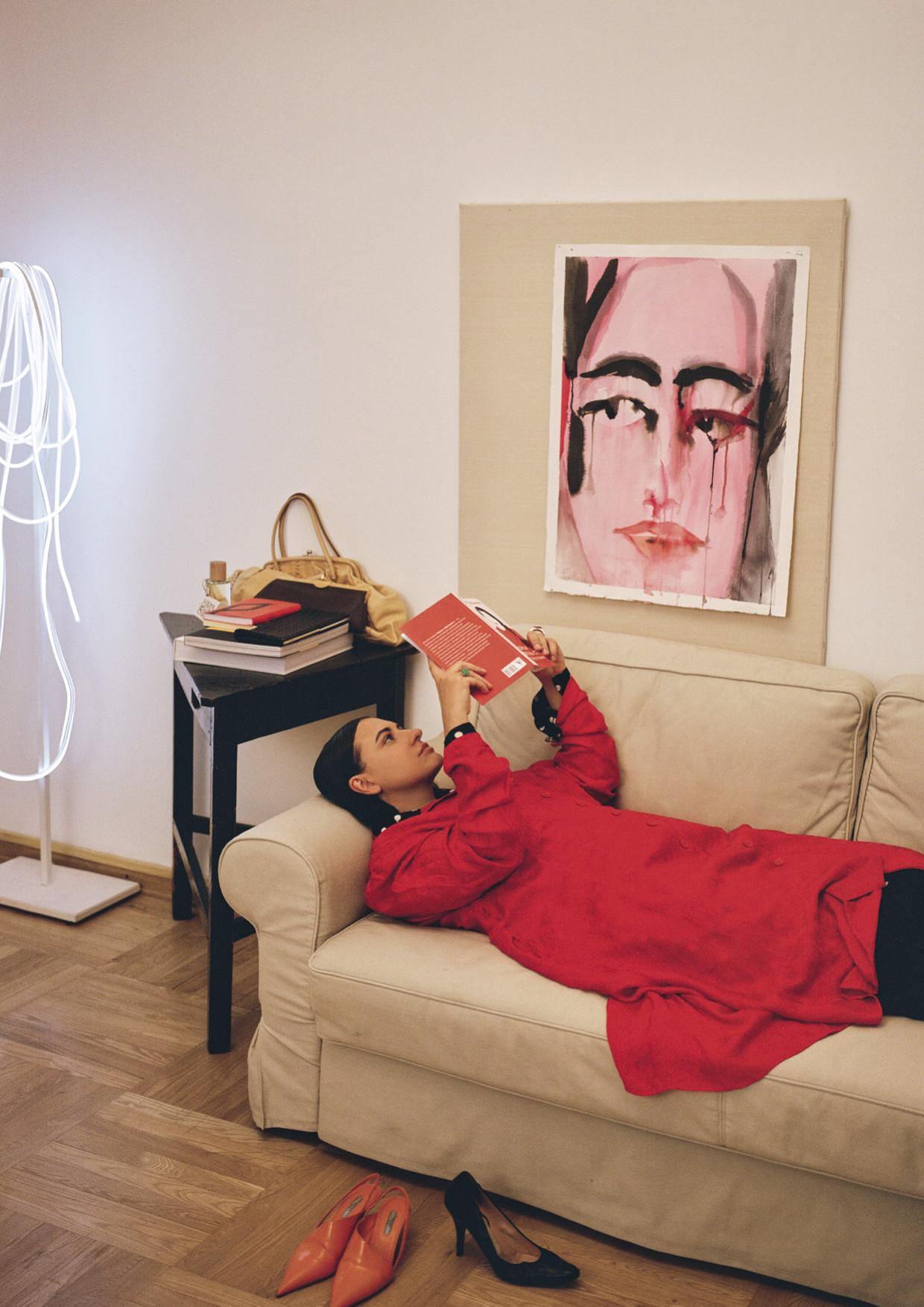 Очень громко сказано — «коллекция». Я совсем недавно начала собирать вещи, которые мне интересны с точки зрения конструкции и дизайна. Это коллекция-ресерч. Например, в ней есть топ Prada 1998 года, он мне важен не из-за бренда или даты, а с точки зрения работы с винилом: результат его переосмысления — некоторые вещи из этого материала в коллекции Ushatáva Paper Street. И да, мне бы очень хотелось, чтобы когда‑нибудь люди увидели мои находки и вдохновились. Сейчас их около 40. Думаю давать их супербережным стилистам на съемки. Но до музея пока далеко. Еще я стала собирать современное искусство и винтажные предметы интерьера. Увлеклась хореографией: влюбилась в современный танец и в гагу. Очень долго хотела попасть на выступление труппы «Бат-Шева», их энергия мне очень подходит. Они настолько свободны, это дико будоражит и вдохновляет, потому что, наверное, у меня этого нет. Но глядя на них, я как будто и сама становлюсь внутренне чуточку более свободной.