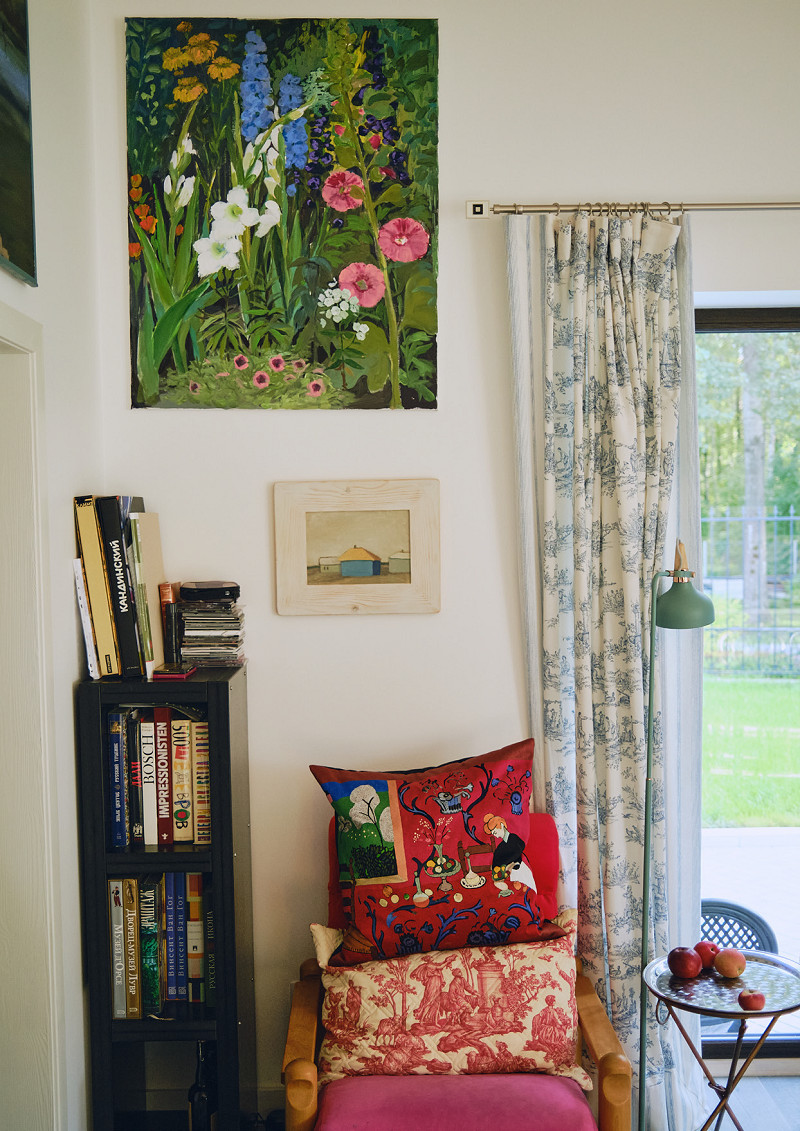 Дизайнер Татьяна Парфенова пишет историю русской моды (и кутюра!), волшебные книги и портреты цветов. Чтобы заниматься всем этим без отрыва от любимого дела (садоводства!), Татьяна Валентиновна превратила свой новый загородный дом в арт-резиденцию, пошерив увитую плющом и мальвой стихийную мастерскую с другими художниками — мужем, преподавателем живописи Анатолием Лобынцевым, розой сорта «леонардо да винчи» и полотнами Устюгова и Бурлюка.