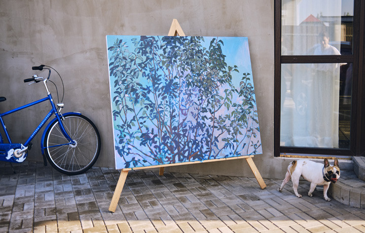 Этот дом построил сын Митя — и на Новый год вручил нам с мужем ключи. Дача стала нашей мастерской. Она небольшая, и мне это нравится: здесь я могу сосредоточиться на себе, здесь мы пишем картины и работаем в саду. В конце участка — чаща сосен и елей: растут сыроежки и лисички, течет ручей, пробегает рыжая лиса, истошно гудят и откладывают икру жабы. Прилетала утка — села в высокой траве, высидела яйца, вывела утят. Прилетали тучи бабочек — и были они всевозможных видов, будто Набоков проснулся и сам сюда их приволок. Целый месяц муж разгребал граблями в этой чащобе прошлогодние листья. А я посадила смородину, шиповник и желтый болотный ирис — думаю, уже следующим летом здесь заколосятся полевые цветы и травы.