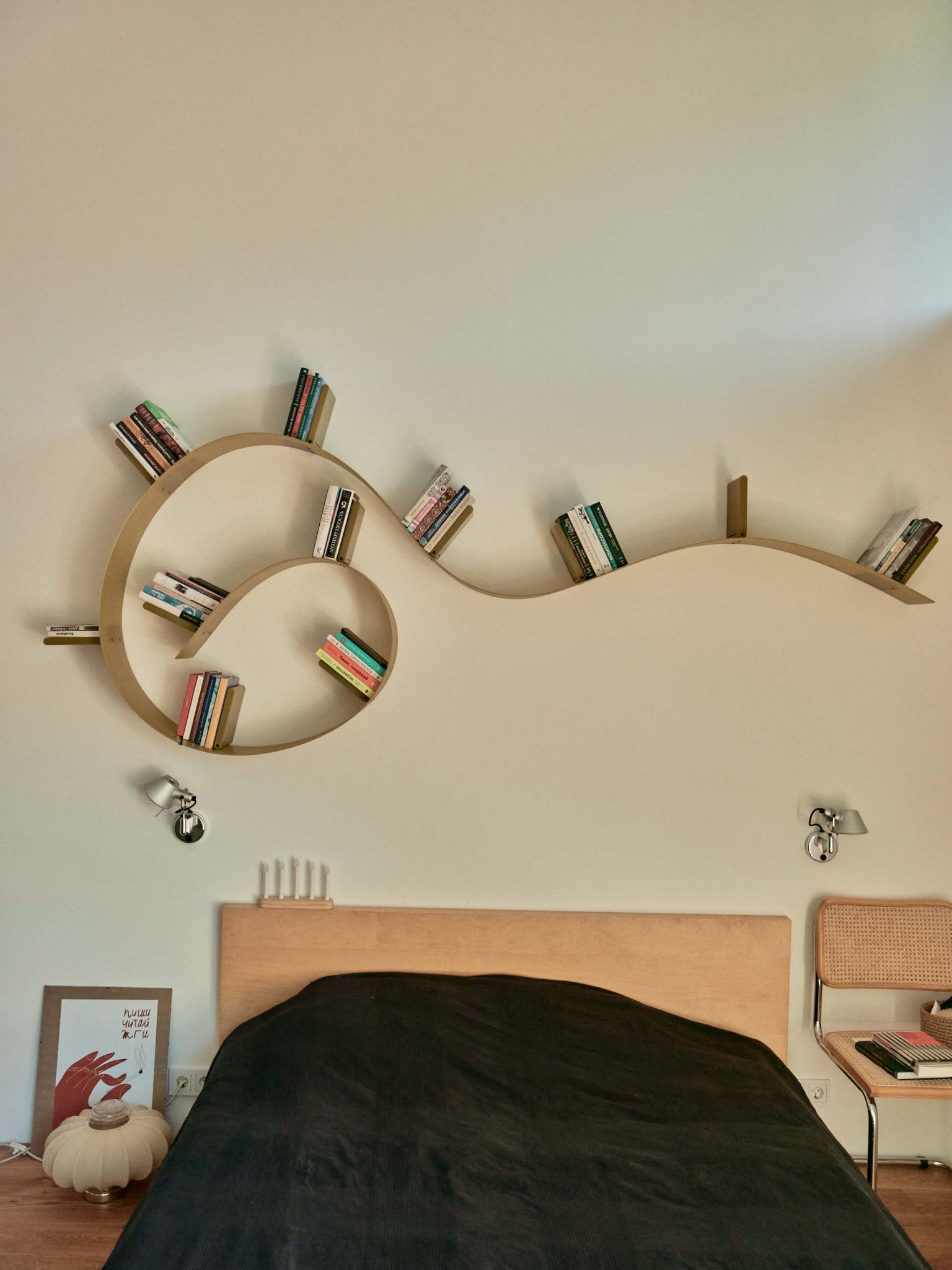 На контрасте с фасадом, мне хотелось наполнить дом объектами классического дизайна, к тому же я очень ими увлекаюсь, все время ищу на аукционах и «Авито», покупаю, реставрирую. Только что собрал стол для террасы — антикварные доски были перегородками на одном из объектов в старом фонде, а ножки когда-то купил как раз на «Авито» за четыре тысячи рублей — тащил их домой и был дико счастлив. Еще я собрал два рабочих стола — для себя и жены Наташи — из фанерных подставок подстольев для швейных машин на фабрике «Скороход»: приделал к ним ножки и получилось очень красиво. Я вообще люблю ваять мебель: сам сделал стеллажи для кабинета, а для дочерей Нины и Василисы — лошадку-качалку и кукольный домик. Я даже думал запустить их в производство, но все никак не дойдут руки. Из культовых вещей горжусь лампой Tizio Artemide Ричарда Саппера, которого я считаю лучшим промышленным дизайнером, и печатной машинкой Olivetti — у меня редкая красная Valentinе: Этторе Соттсасс, основатель группы «Мемфис», выпустил ее 14 февраля 1969 года, она входит в коллекции всех лучших музеев дизайна. Алый диван Ploum от братьев Буруллеков для Ligne Roset пал жертвой лабрадора Наоми, кажется, нам придется его перетягивать. Уличные стулья — от Гастоне Ринальди, на металлические квадраты его вдохновили продуктовые корзины. Детские стулья у нас Stokke, этот бренд делает еще и классные коляски. Из русских дизайнеров у нас есть стул моего однокурсника Александра Каныгина, он стал предметным дизайнером. Особенно мы ценим вещи, доставшиеся нам от родственников, у меня есть колокол, отлитый в 1865 году, кстати, он отлично бы подошел в качестве сигнала к обеду, а у Наташи от бабушки, заведующей отделением Византии и Ближнего Востока в Эрмитаже, оказались буфеты и кресло Isku, от прабабушки — настенные часы.