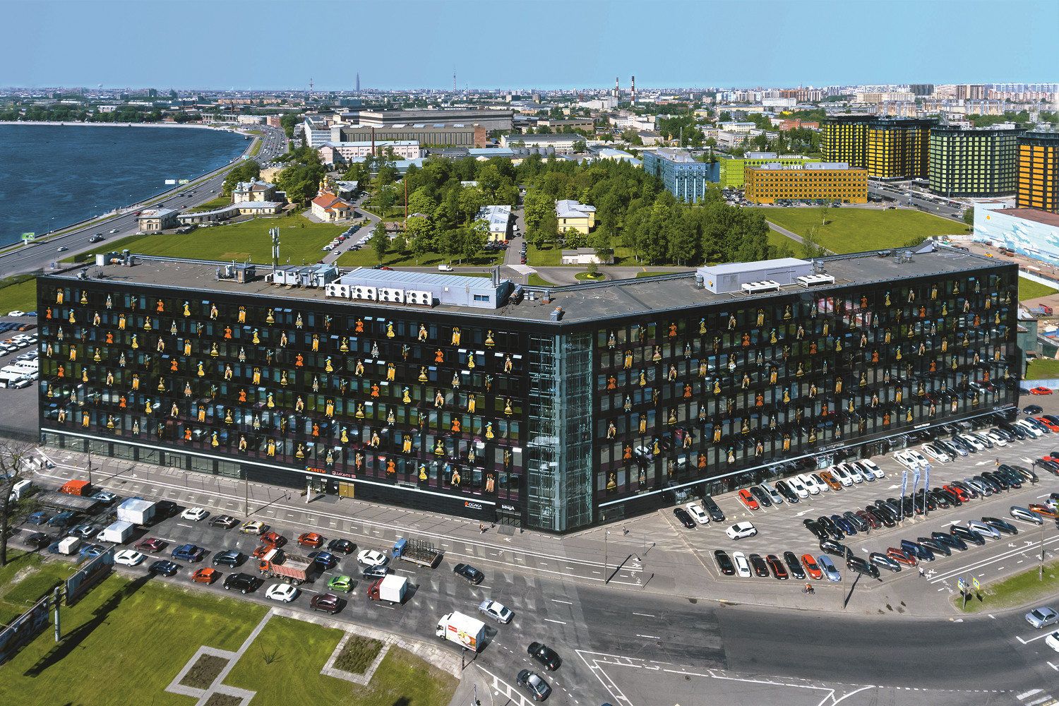 Уже больше 15 лет УК «Теорема» строит по проектам Сергея Чобана и его берлинского бюро Tchoban Voss Architekten. Результат этого сотрудничества — лучшие современные здания Петербурга. Первый совместный проект Водопьянова и Чобана — бизнес-центр «Лангензипен». На территории завода «Знамя труда» отреставрировали дореволюционный кирпичный корпус, а советский, 1960‑х годов, полностью реконструировали, чтобы превратить в офисное здание. Такое решение стало инновацией не только российского масштаба — c помощью технологии, которой никто до этого не пользовался, на стеклянные панели фасада нанесли коллаж из фотографий элементов римских зданий. Затем главной лабораторией для реализации своих идей Игорь выбрал территорию бывшего завода «Россия» в районе Охты, где стал строить бизнес-парк «Полюстрово». Здания в нем хороши в первую очередь — но не только! — ни на что не похожими фасадами. На облицовку дома Бенуа Сергей Чобан придумал нанести эскизы балетных декораций знаменитого художника. На три бизнес-центра «Времена года» — летний, зимний и осенний пейзажи.