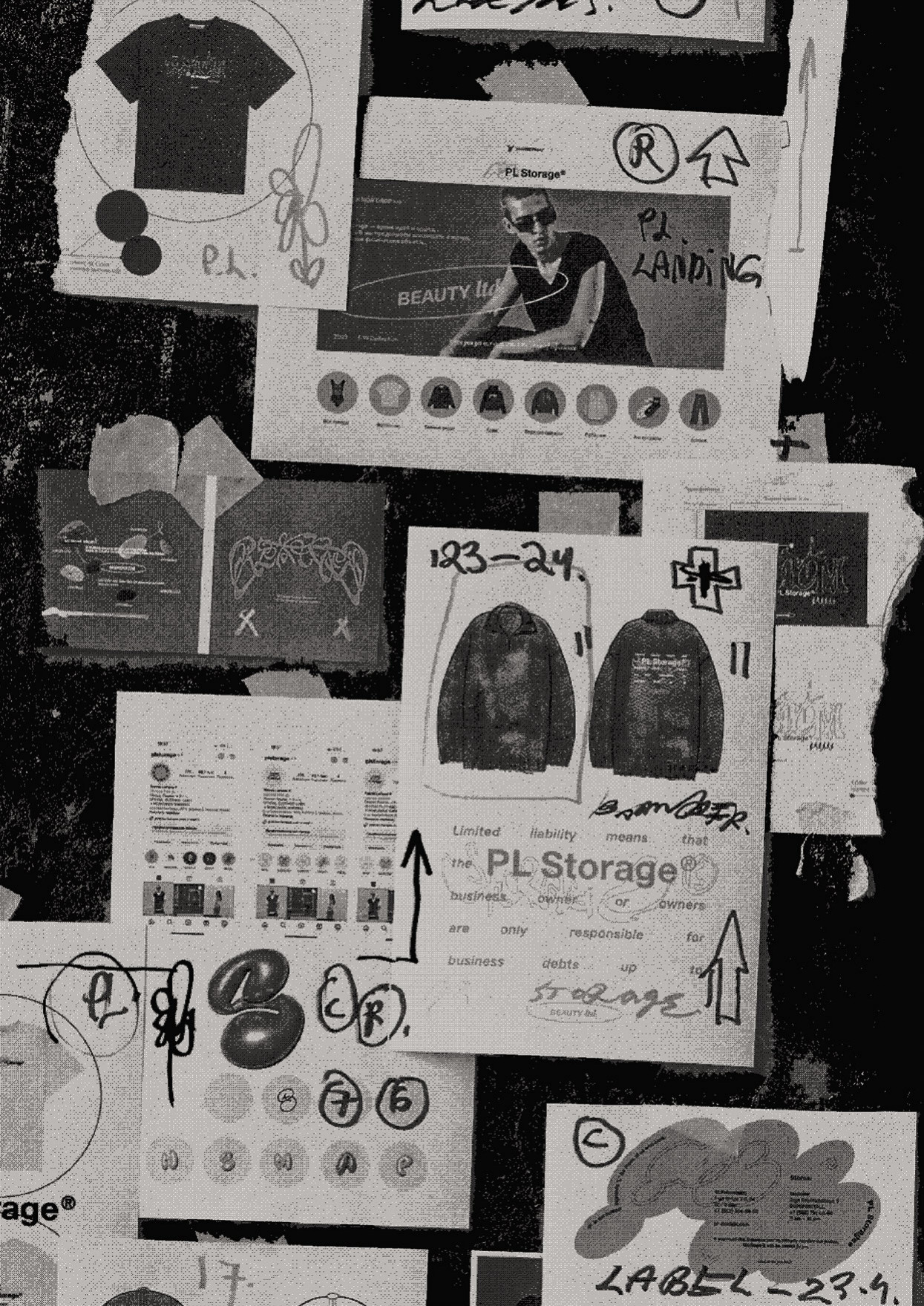 Часто подстрочник к надписям является частью самого принта — например, в коллекции Beauty цитируется отрывок из книги «Философское исследование о происхождении наших идей возвышенного и прекрасного» Эдмунда Берка, а на новом свитере PL Storage мы играем с концепцией несуществущей компании Beauty.Ltd и «ограниченной ответственности», которую она несет.
