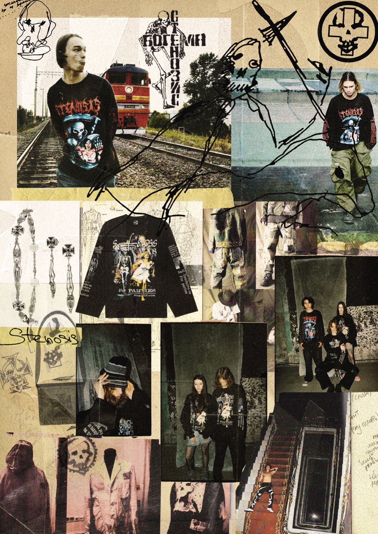 Stenosis делают художники Даниил Шульгин (Shulya) и Анатолий Алексеев: принты на стыке Эроса и Танатоса разрабатывают сами, опираясь на трэш-хоррор-эстетику, и отливают макабрические сценки в серебре с петербургским ювелиром Mozi J. Помимо худи (как у Элджея) у Stenosis имеются распущенные свитеры и практичные арт-пеналы.